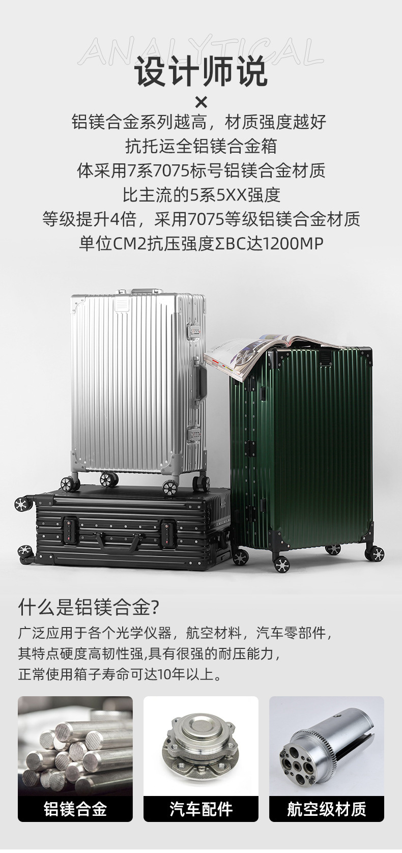 全铝镁合金行李箱系列采用全新配色设计。