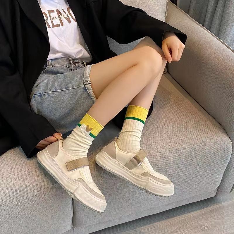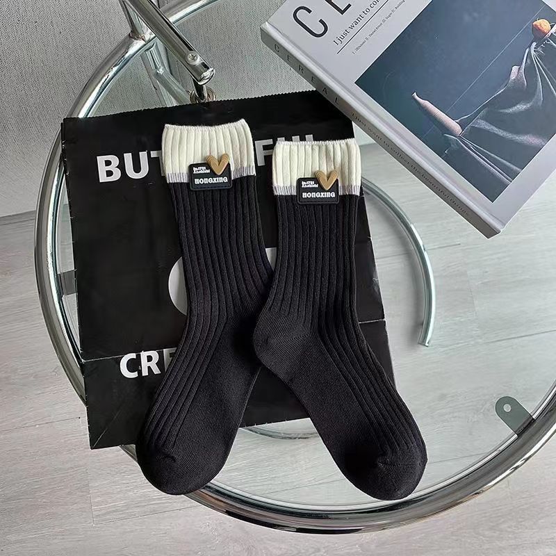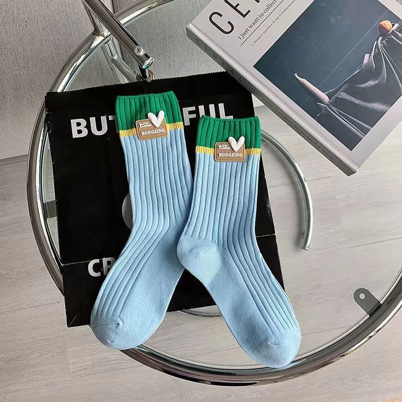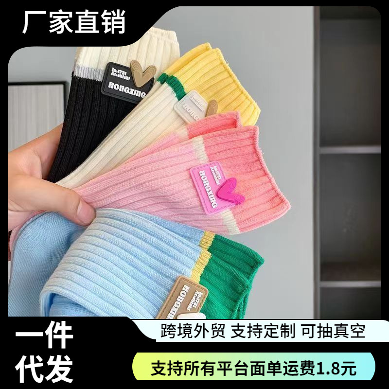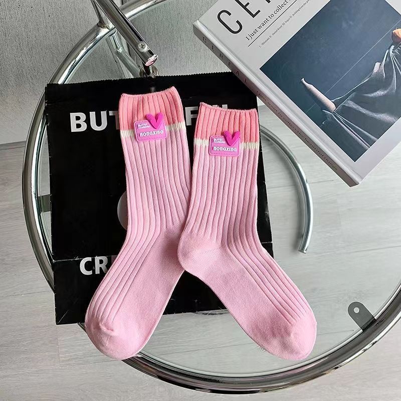 ドーパミンの靴下の女性の春の夏の新型の2針の色のストライプの愛の標識のinsの潮の運動の防臭の中で筒の靴下