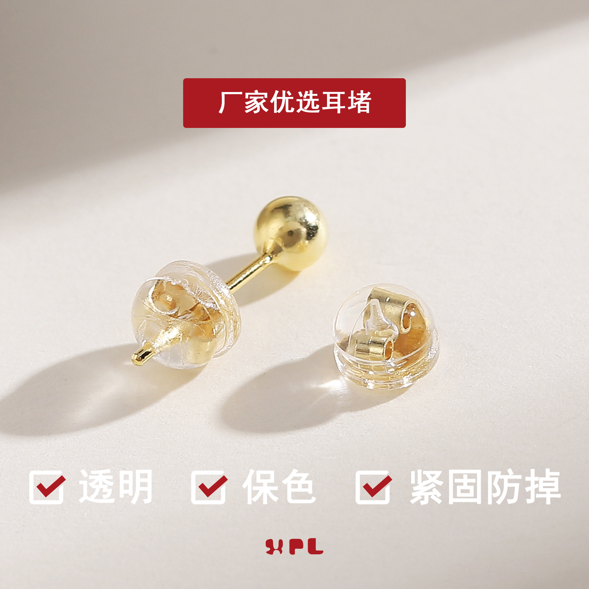 愛の耳栓の真の金のメッキのシリカゲルの透明なハンバーグのイヤリングの部品のピアスの耳の後ろの耳栓の販売中です。