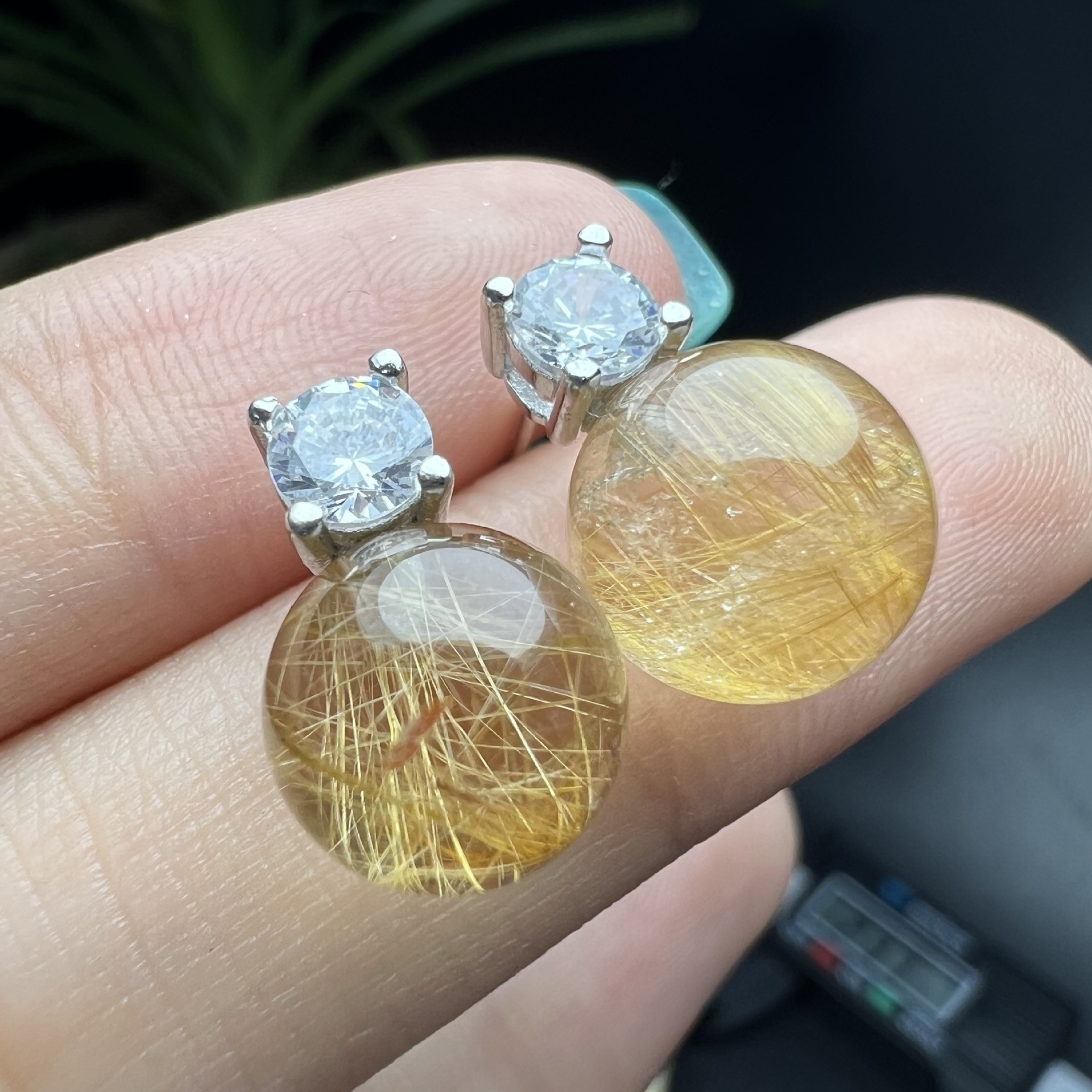 天然ブロンドクリスタルイヤリング、s925シルバー象嵌、髪の毛がクリアでデザイン感たっぷり、卸売可能