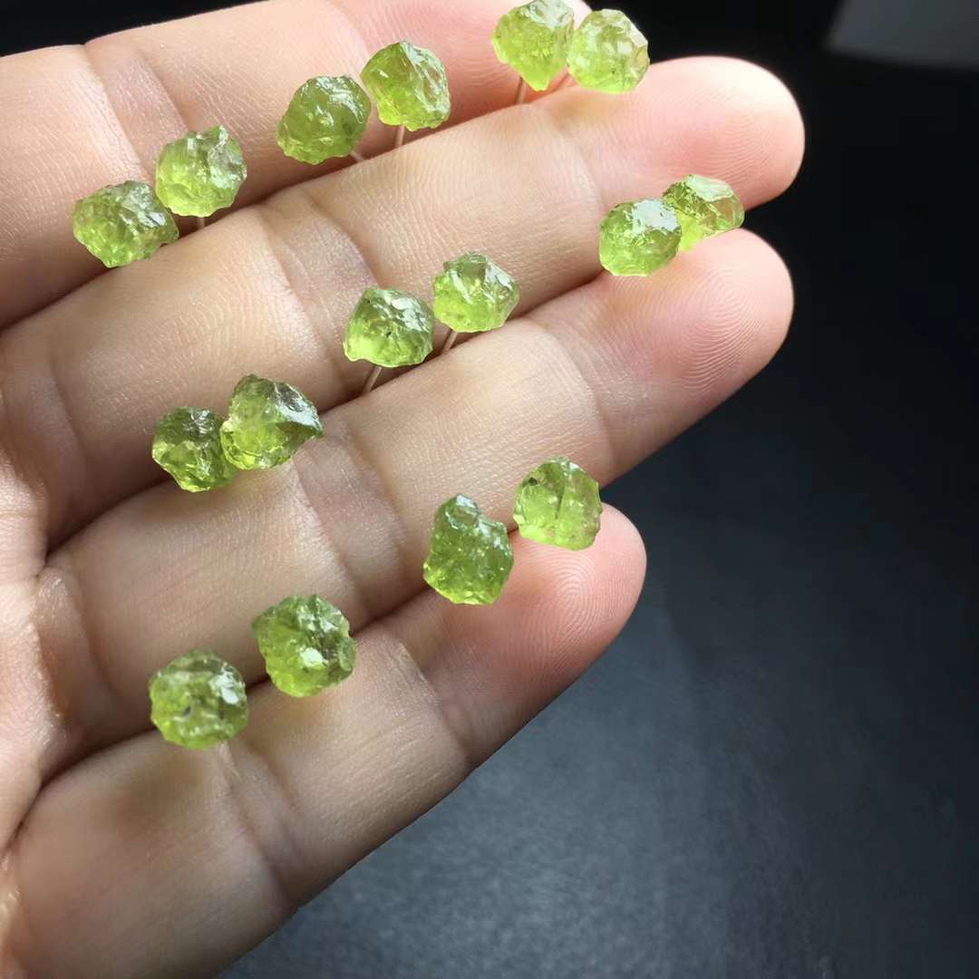 天然オリビン原石ピアスs925銀モザイクins女性シンプルで個性的なブドウ緑は国境を越えて批判することができる