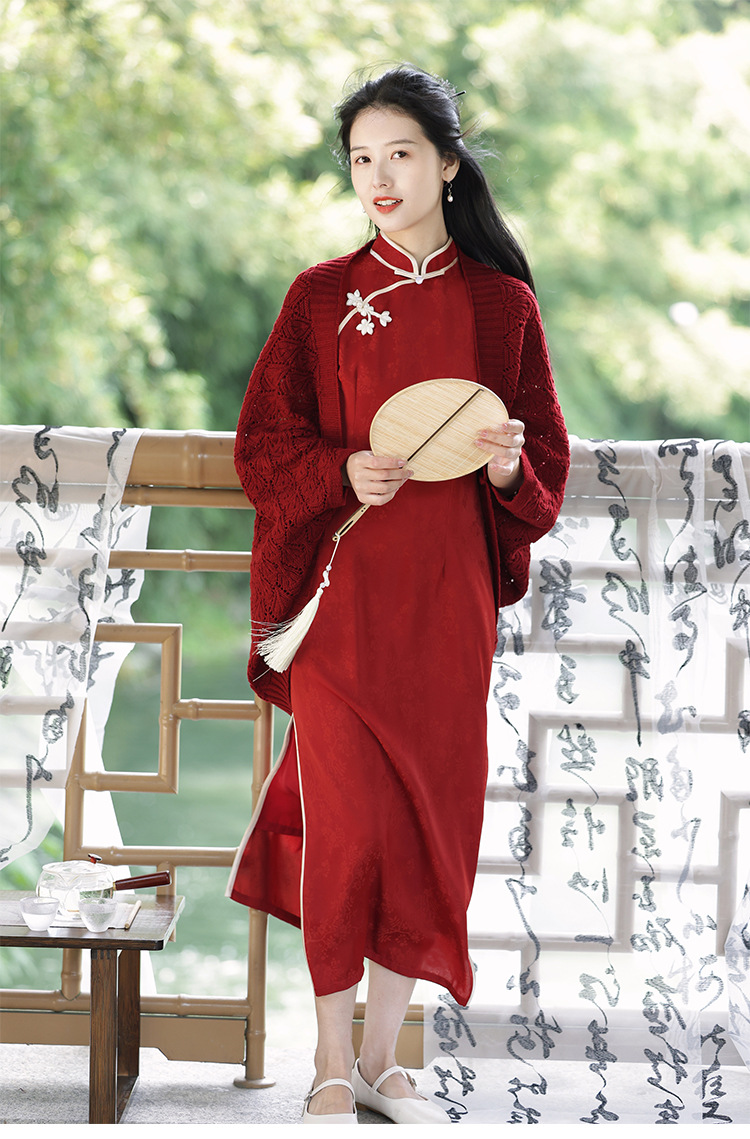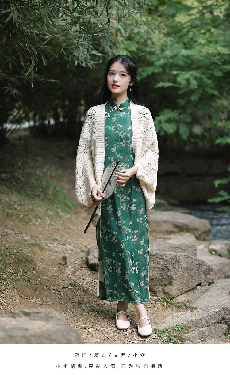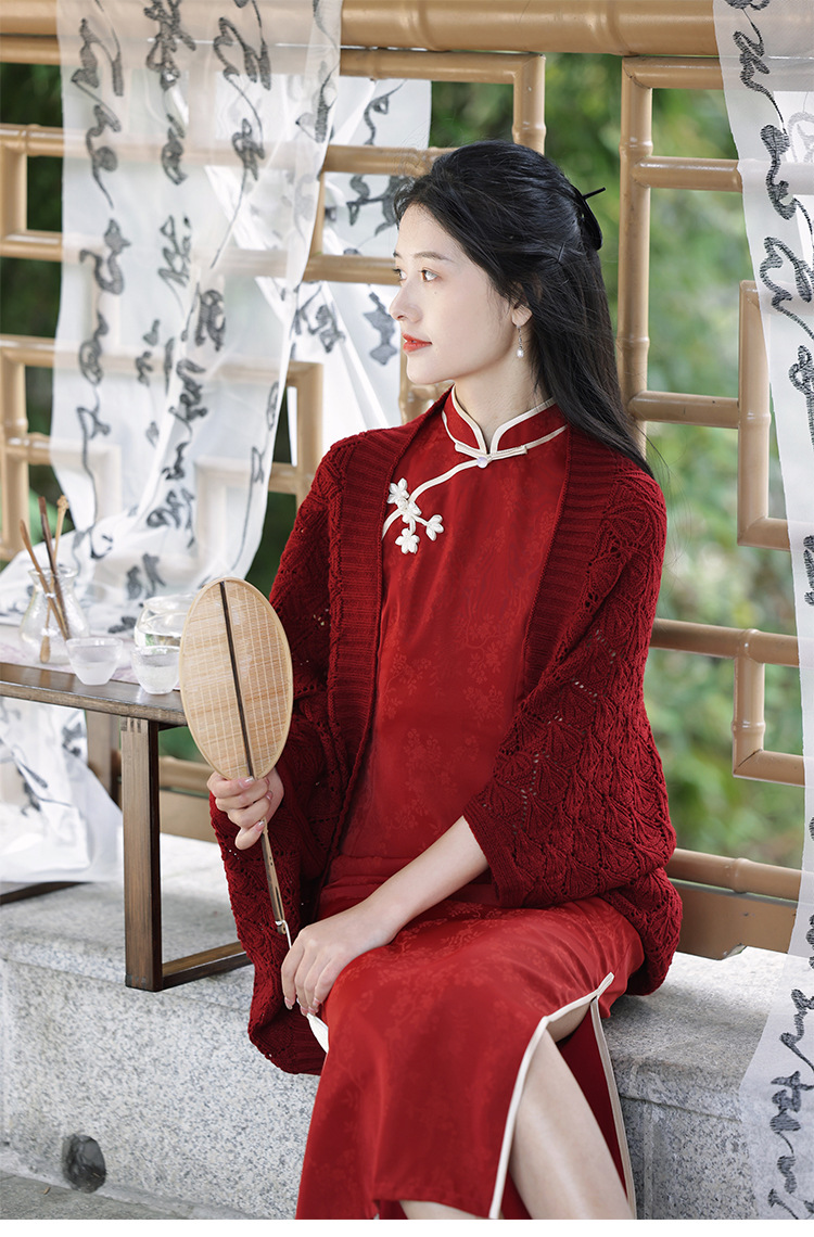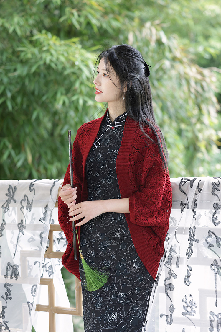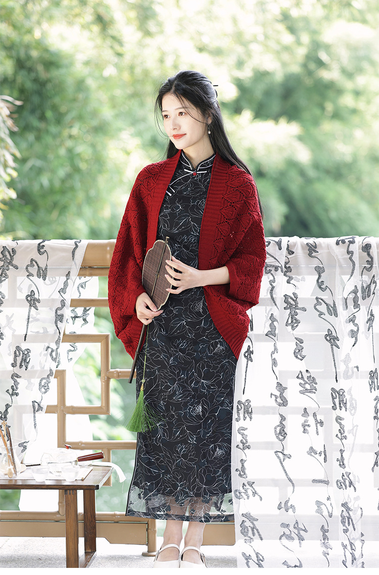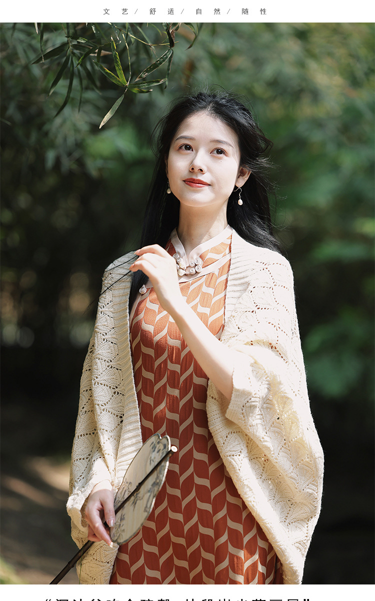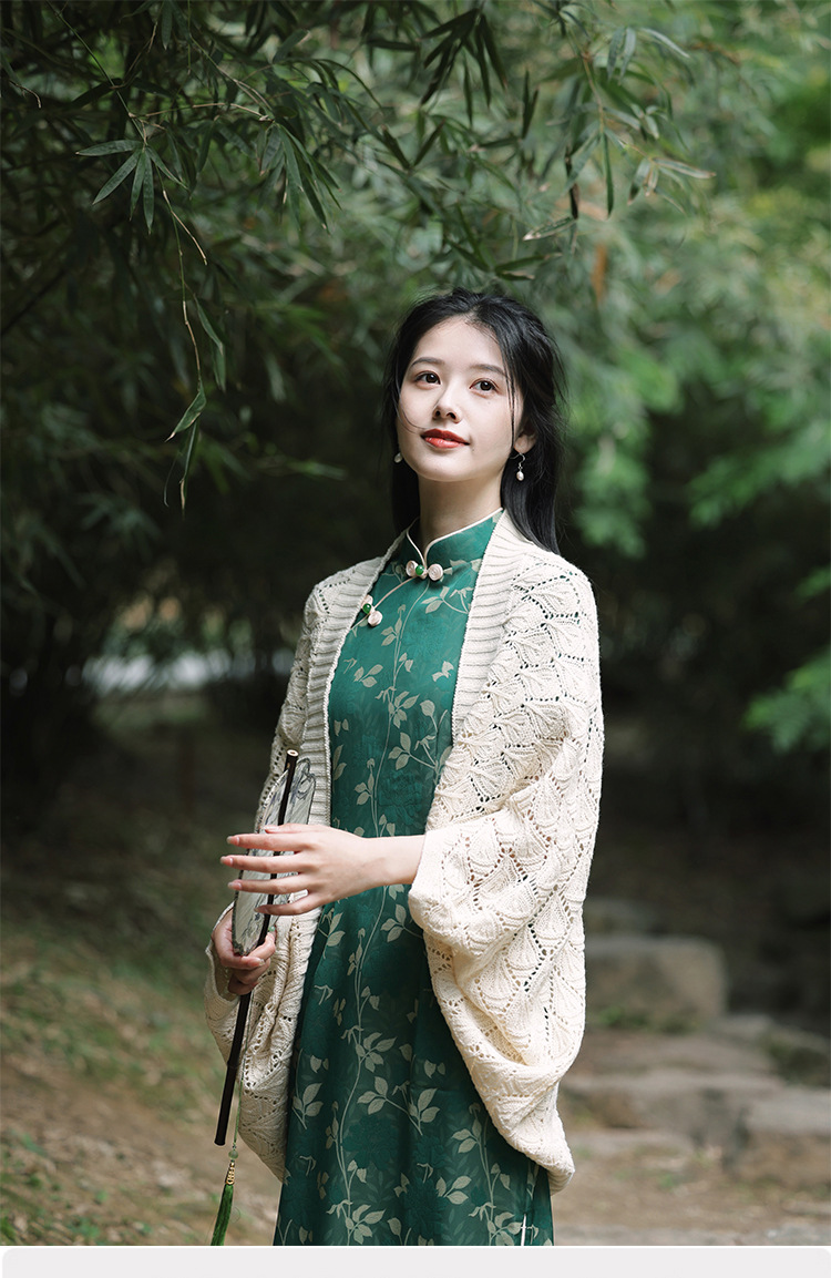レトロで爽やかな2025年夏薄い中空文学的で多用途なチョーカーニットカーディガンとチャイナドレスのアウターショール