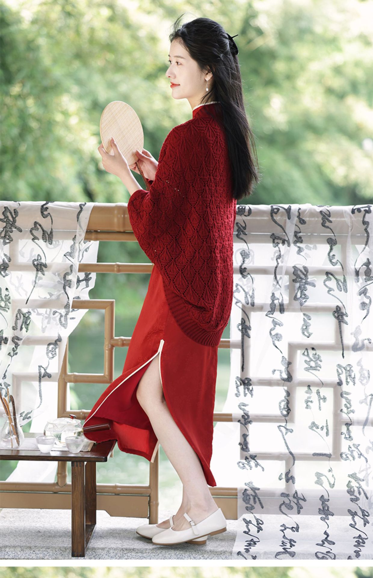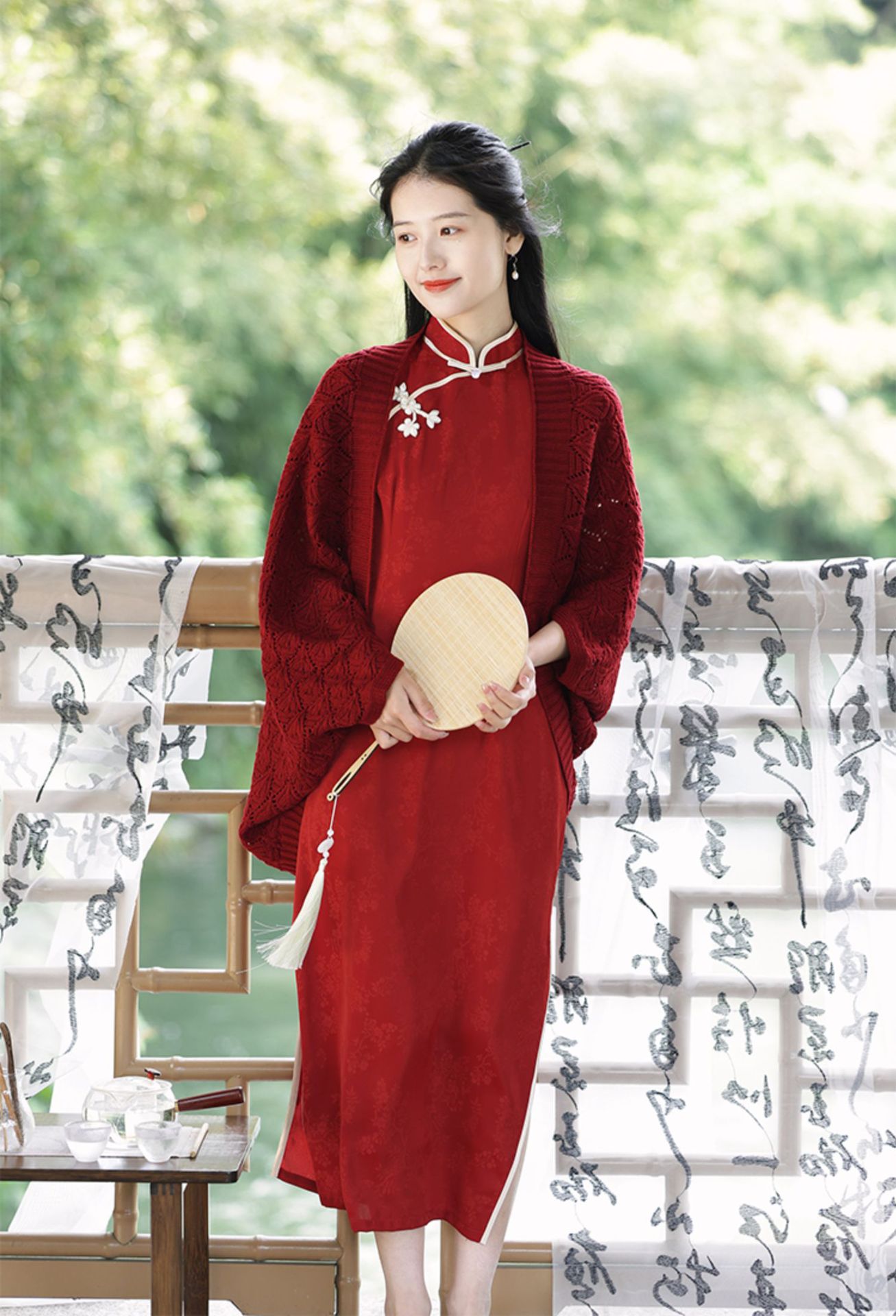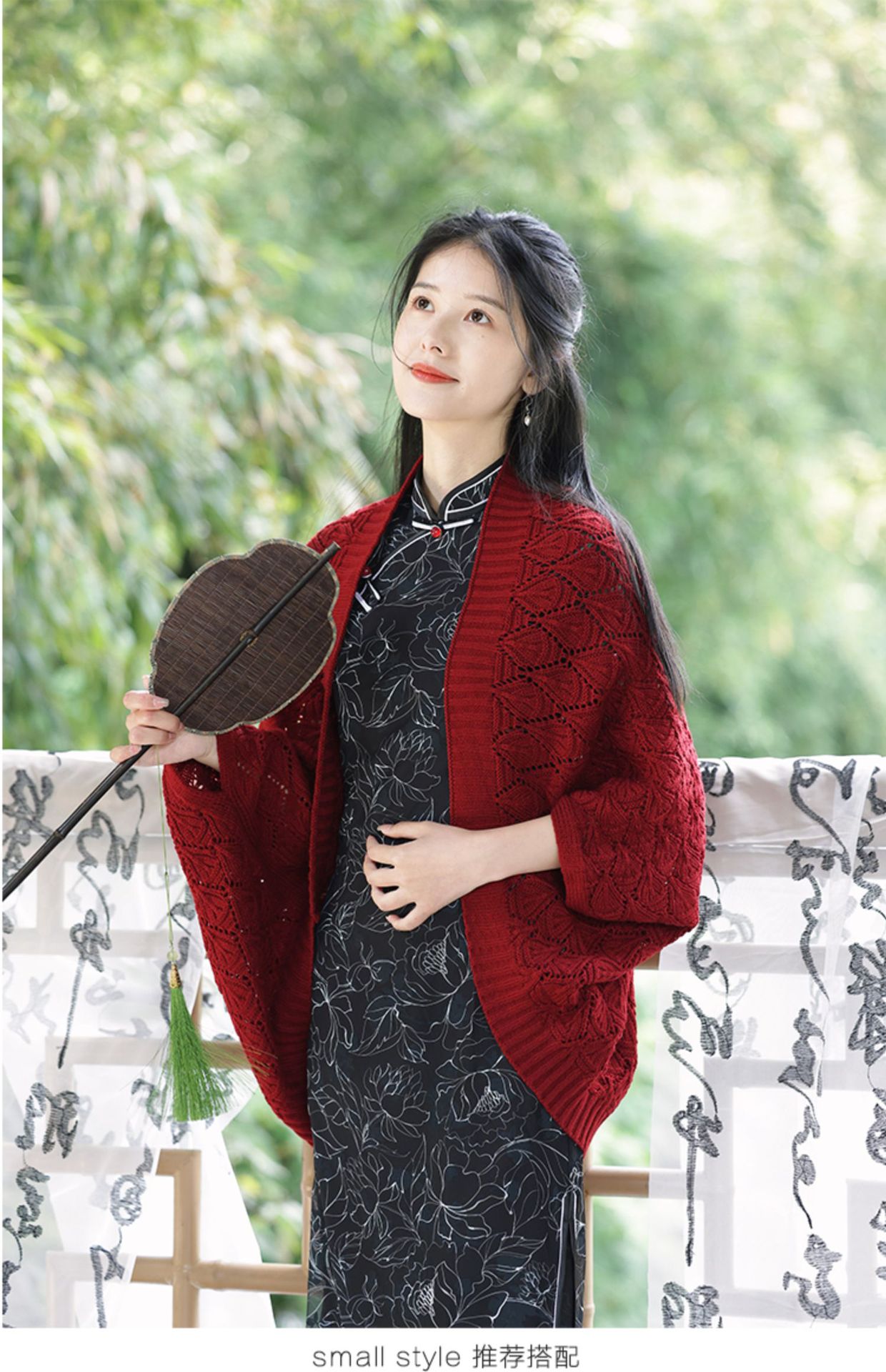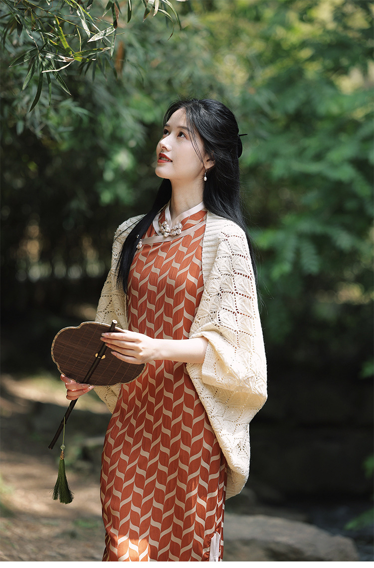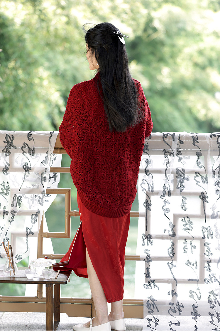 レトロで爽やかな2025年夏薄い中空文学的で多用途なチョーカーニットカーディガンとチャイナドレスのアウターショール