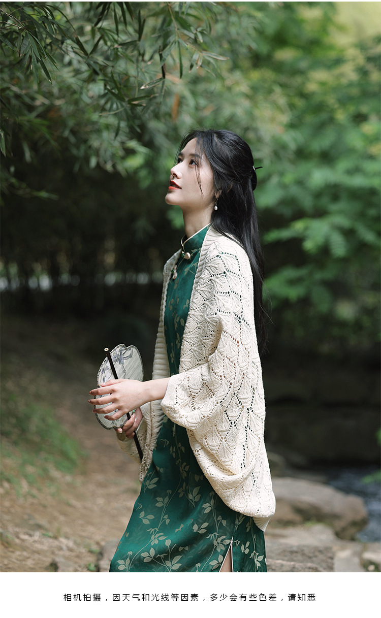 中空かぎ針編みカーディガンジャケット、文学的でレトロな多用途チャイナドレスショール、夏のスカートとマッチング