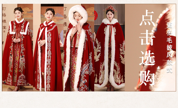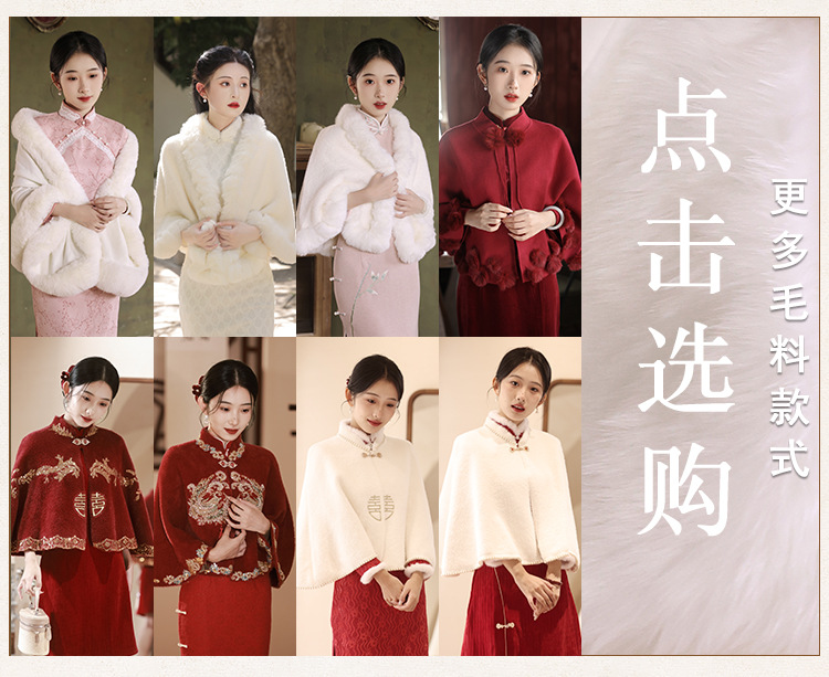 2024年秋冬にミンクのベルベットのショールのレトロなマントにウェディングドレスのチャイナドレスをつけた中国式のマフラー