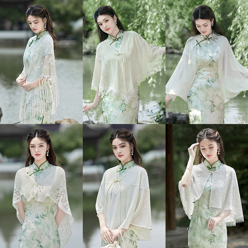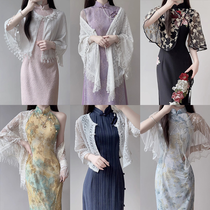 チャイナドレスショールチュールアウターカーディガン2025新しいレース多用途タッセルコートマントハイエンドの新しい中国風