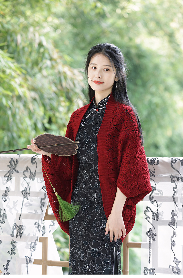 チャイナショール、レトロな文学的で多用途なニットジャケット、ケープカーディガン、新しいスタイルの2025春服