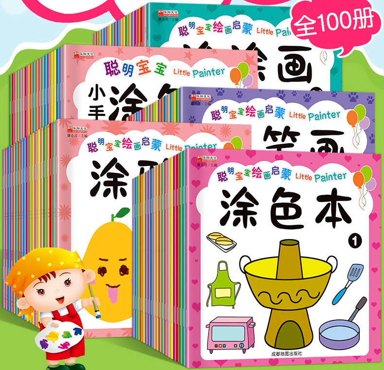 全100冊の早教塗り絵本啓蒙絵本2-6歳児童幼稚園落書き絵本塗り絵本