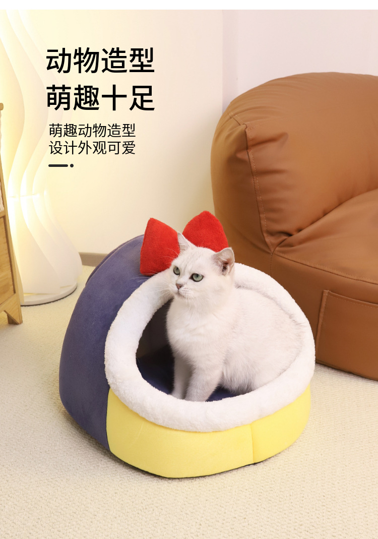 秋と冬の新しい猫の形の犬小屋冬のインターネット有名人暖かい半密閉型猫小屋マットペット用品猫ハウス