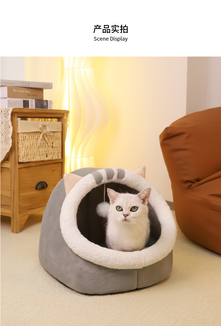 ペット四季保温猫の巣冬猫の巣犬の巣四季通用用品閉鎖式猫のベッドは分解して洗うことができます。