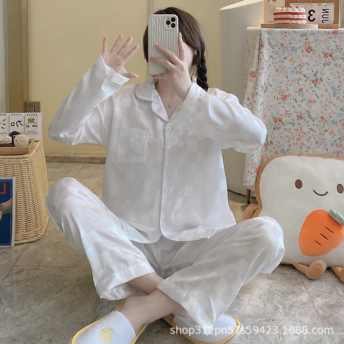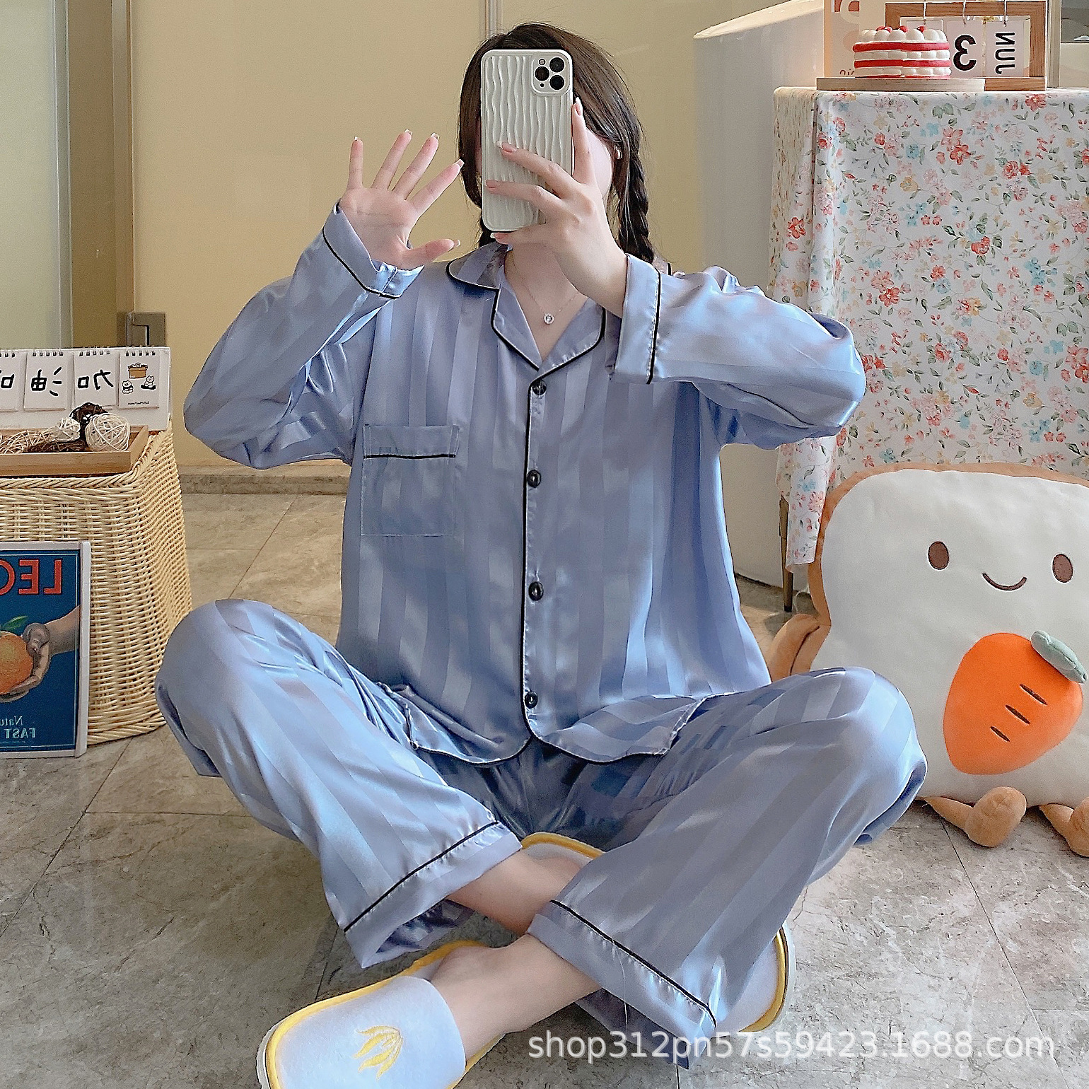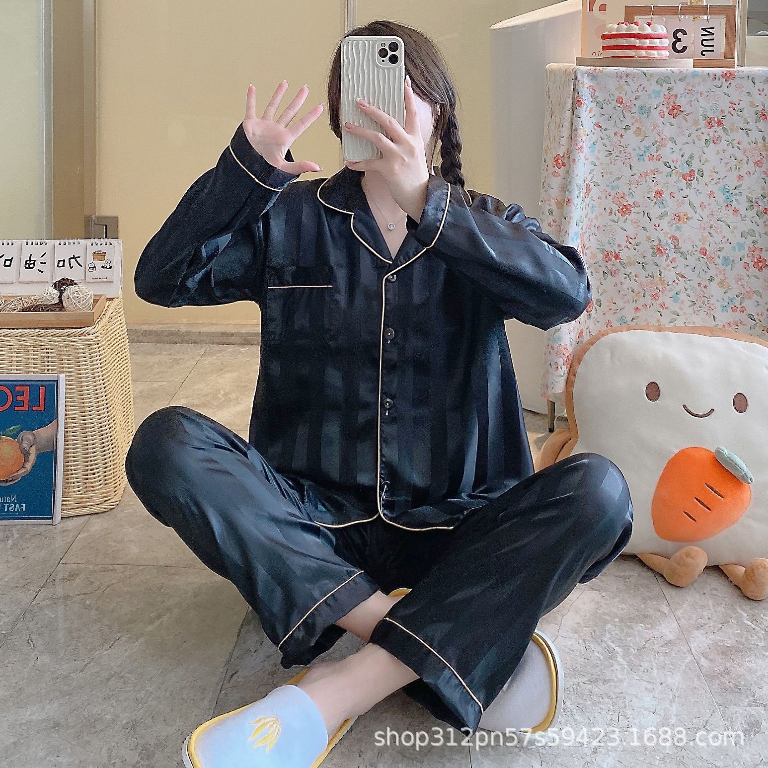 Insパジャマレディース春秋アイス長袖高級感新作ジャカードシルク大きいサイズホームウェア冬スーツ