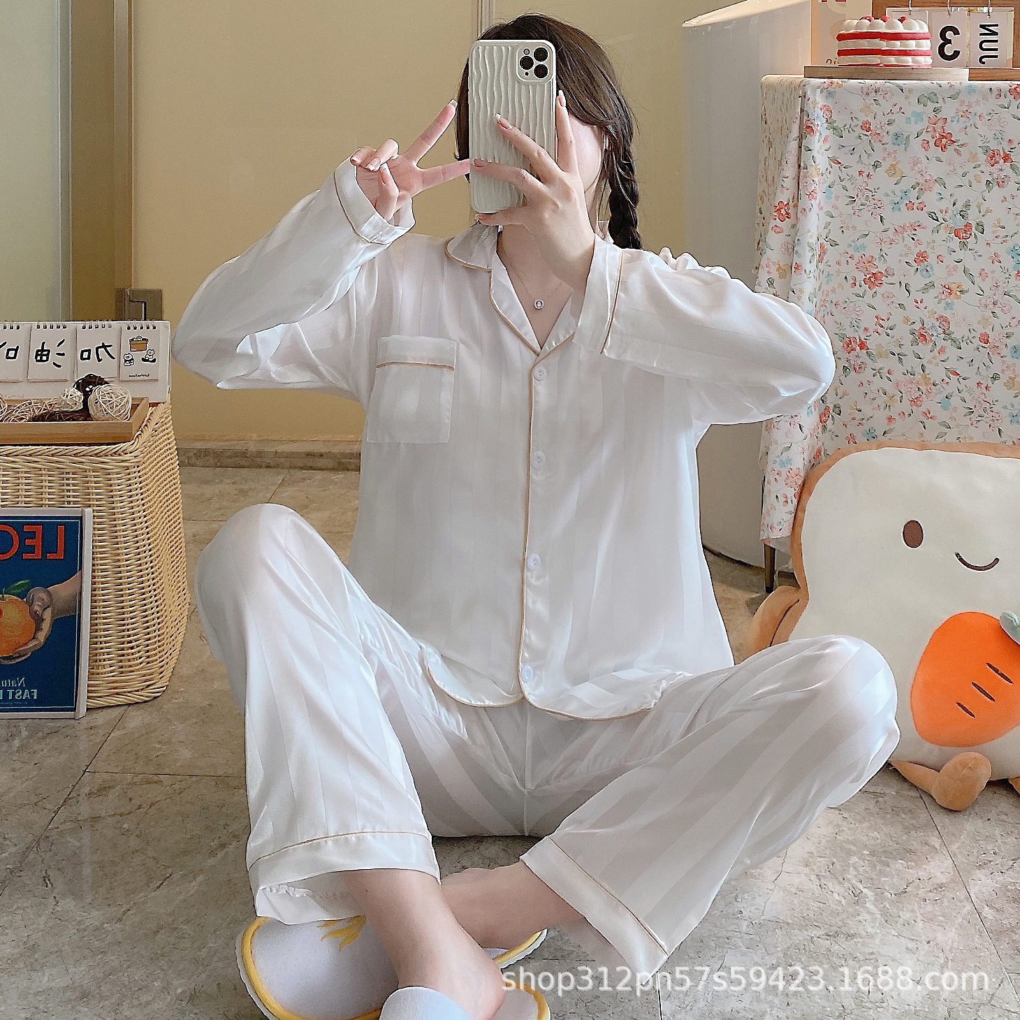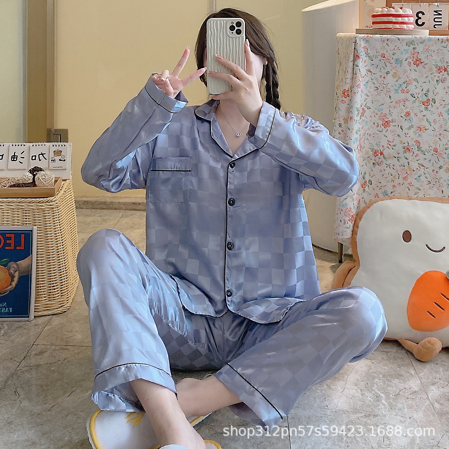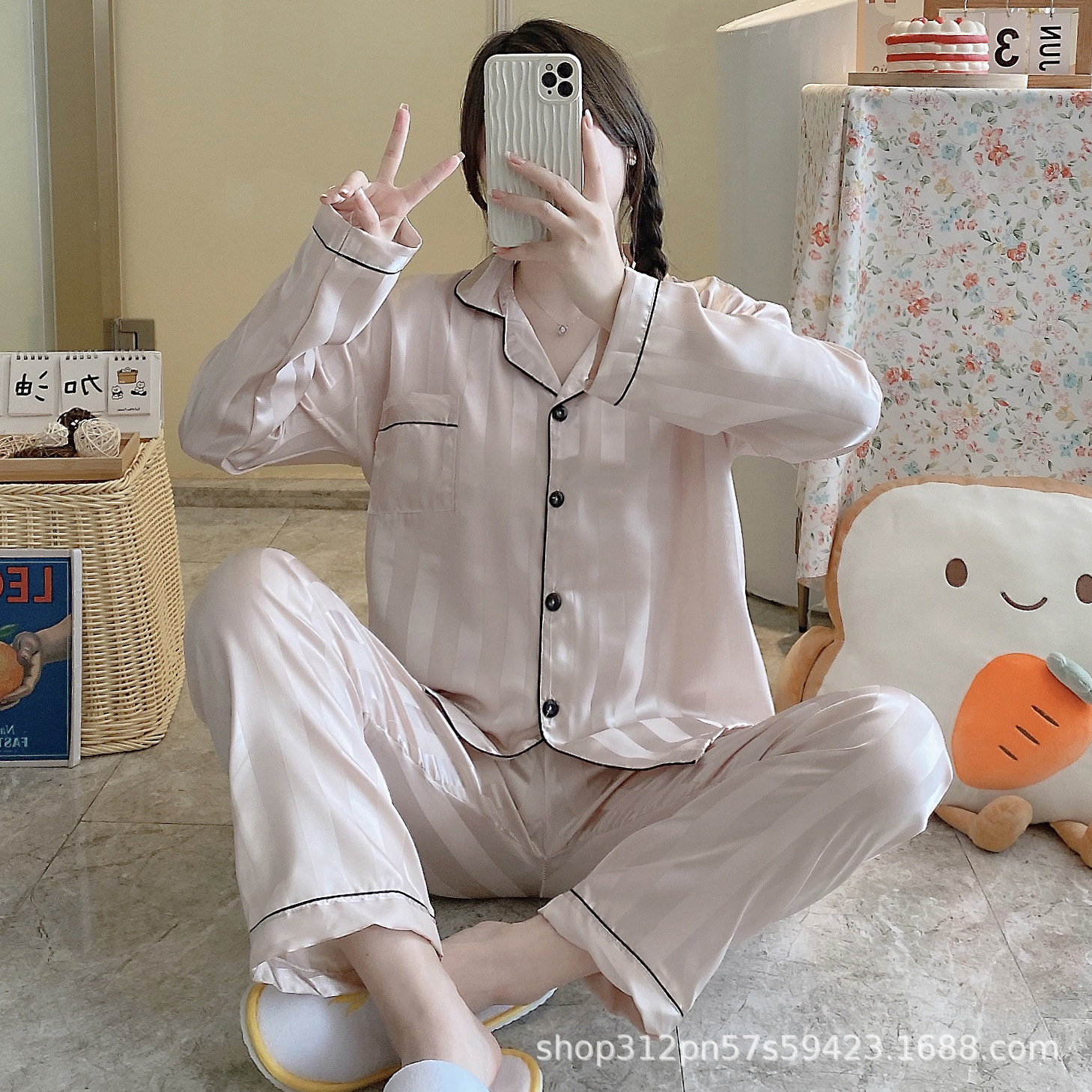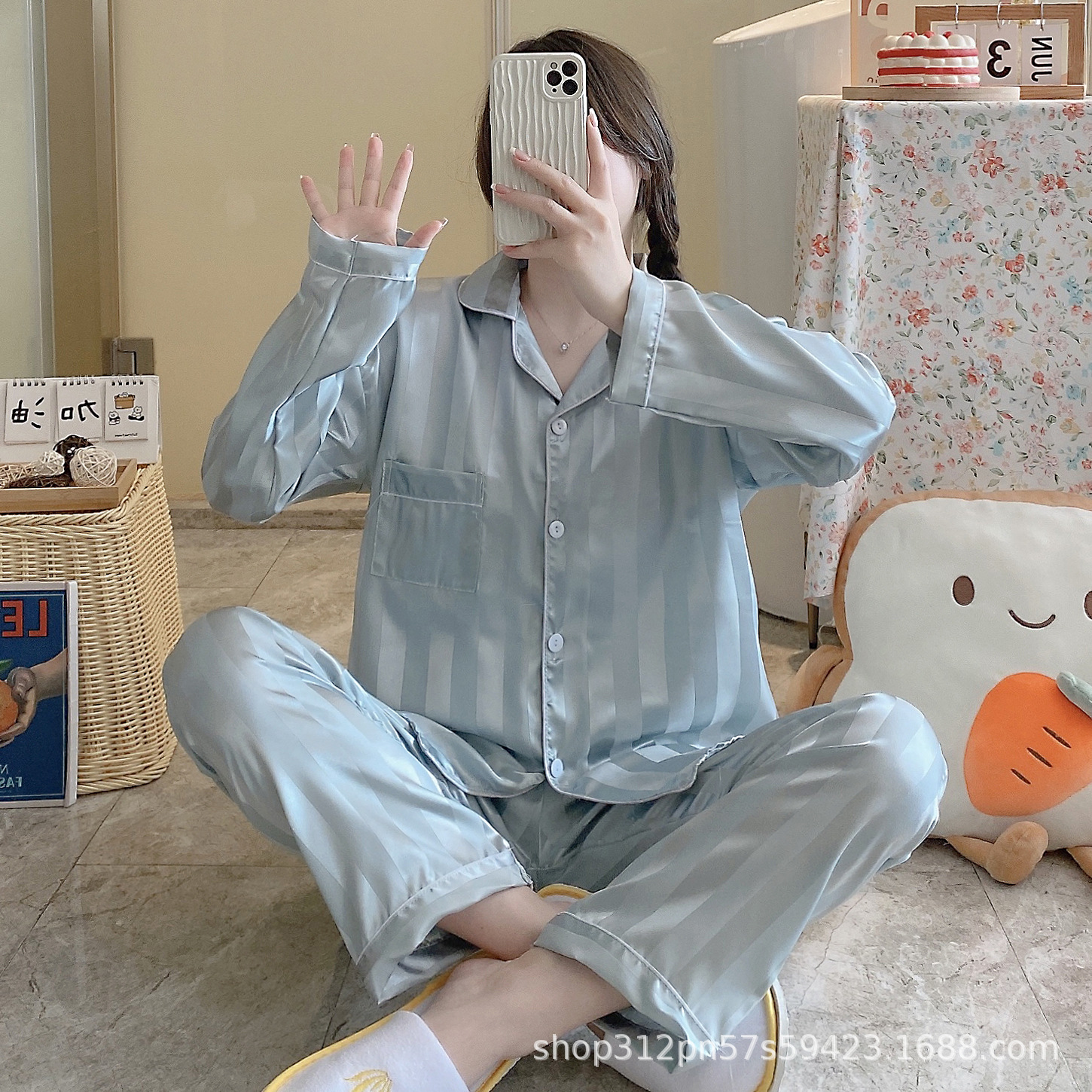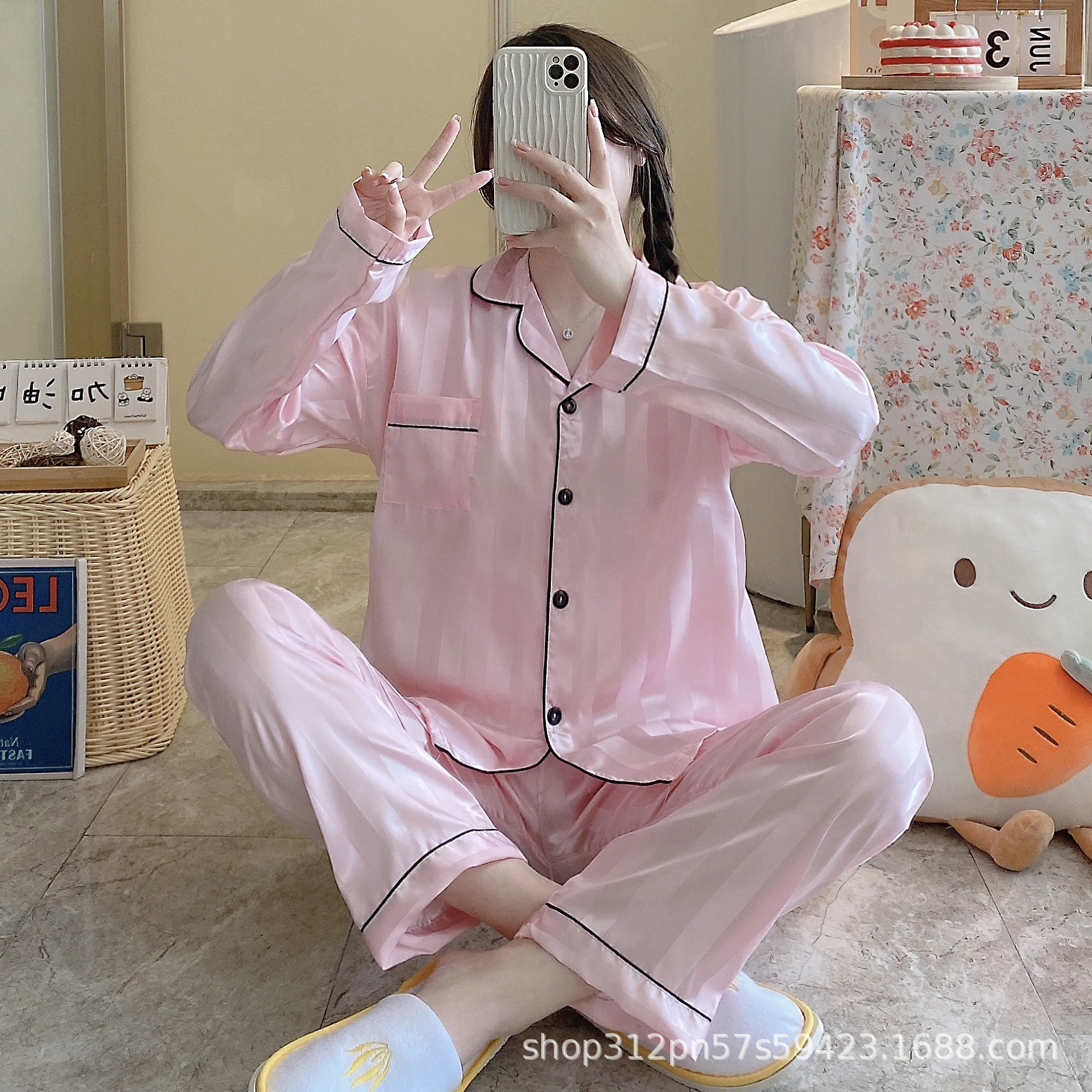 シルクのパジャマの女性秋の長袖の氷の糸の2つのセットの韓国版のカジュアルなカーディガンのシルクのパジャマは部屋の服を着ることができます。
