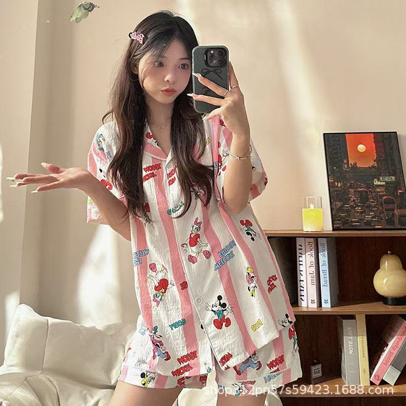 Thailand睡衣女夏季韩版卡通可外穿短袖短裤家居服套装泰国批发