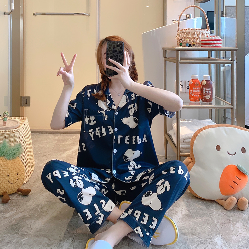 Wholesale東南アジアタイ外国貿易パジャマ女性半袖長ズボン漫画襟付きホームウェアセット