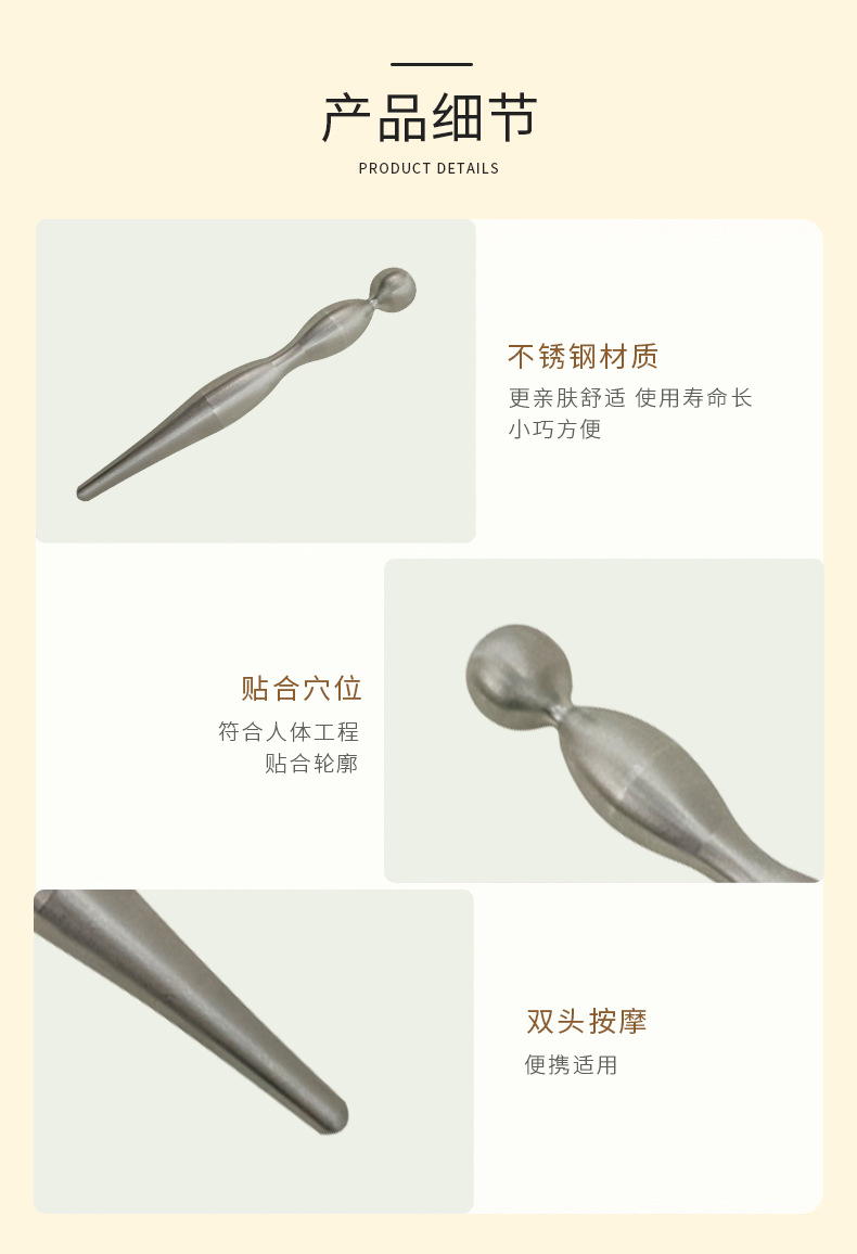 304ステンレスダブルヘッドポイント穴マッサージスティック金属アイクリーム2つヘッドアイクリームガイドスティック目マッサージ美容スティック