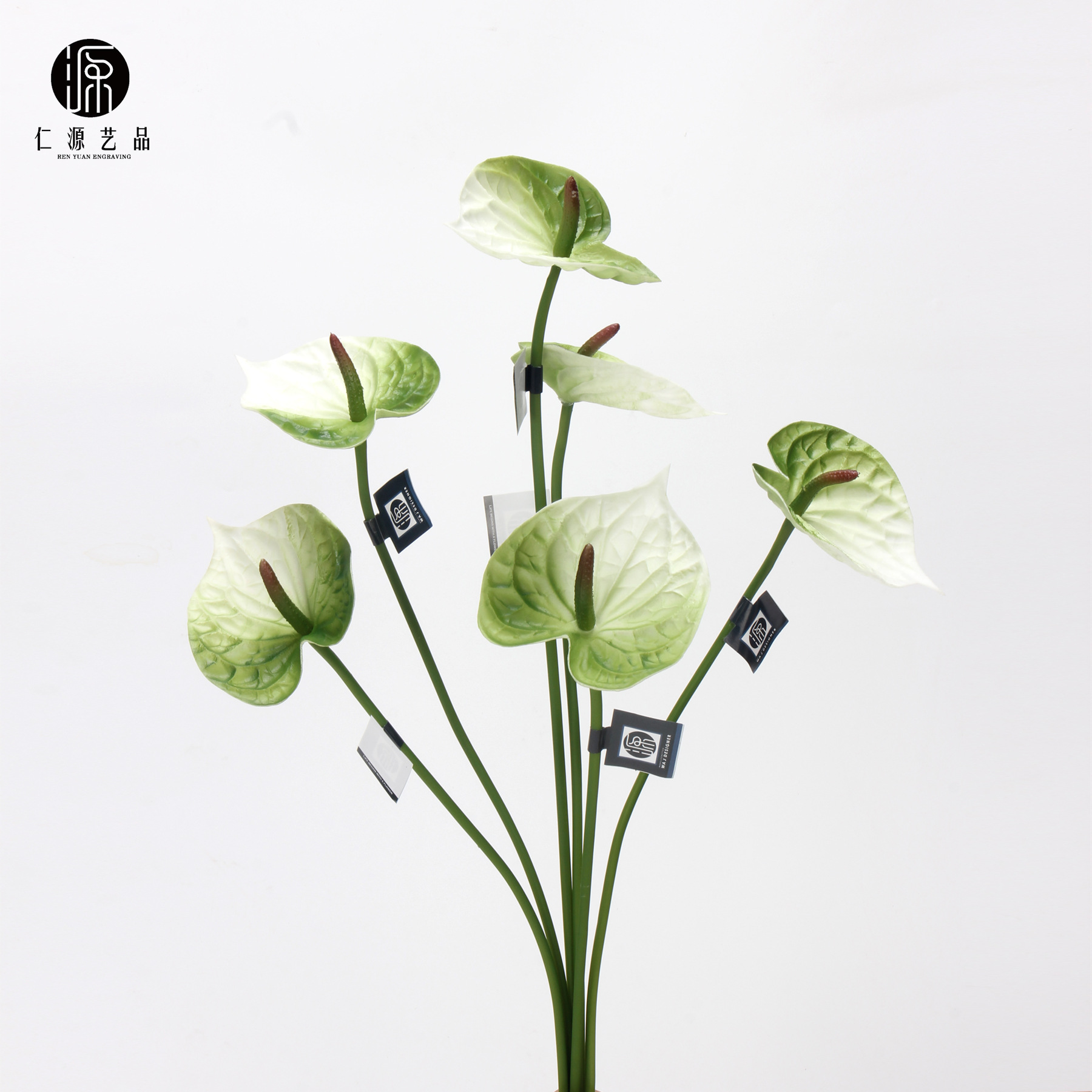 工場直売PUハート型紅掌シミュレーション花手触り火鶴掌花芸生け花配材単本偽花緑掌