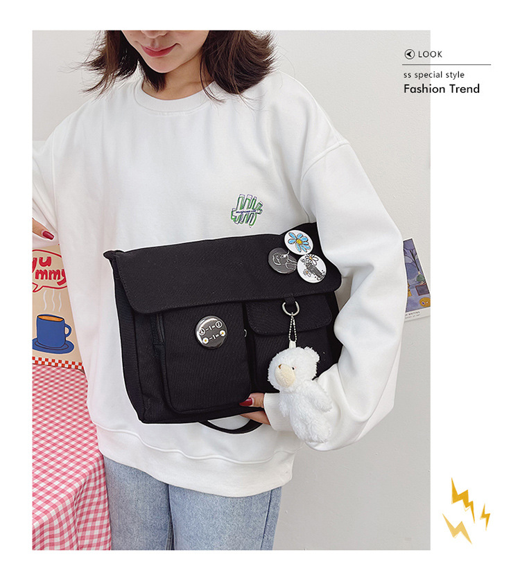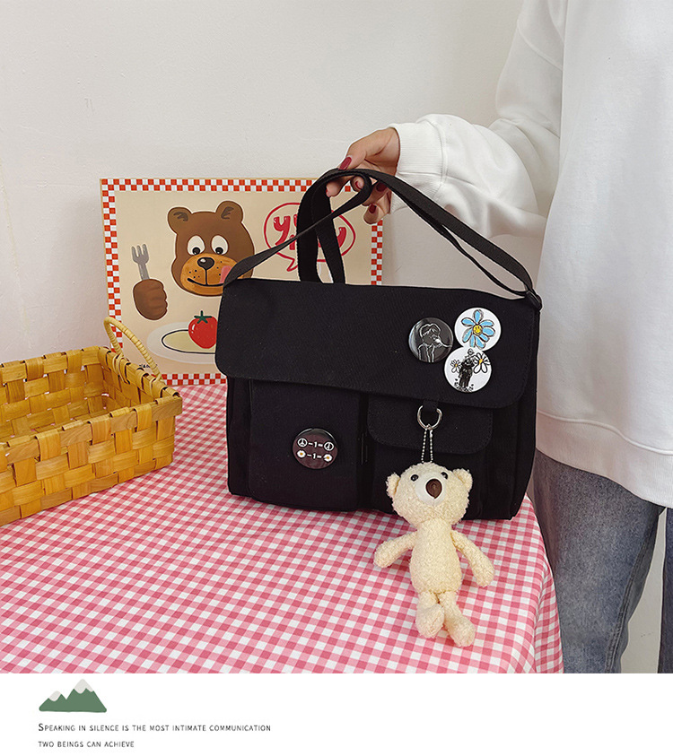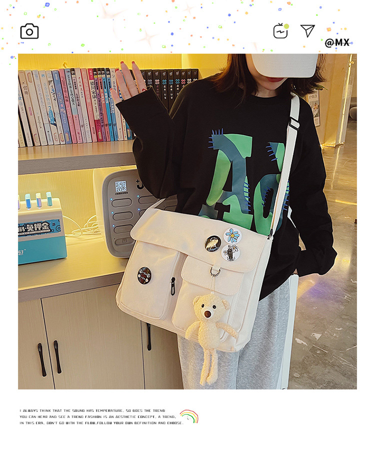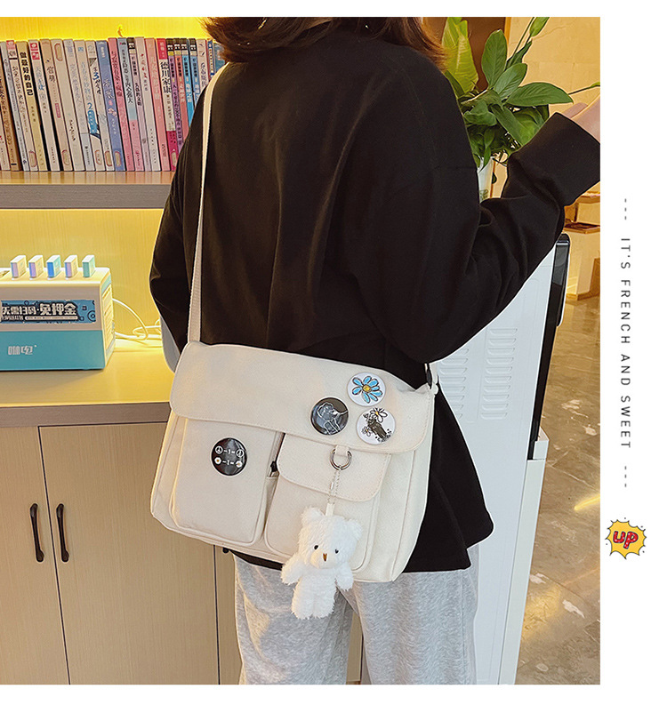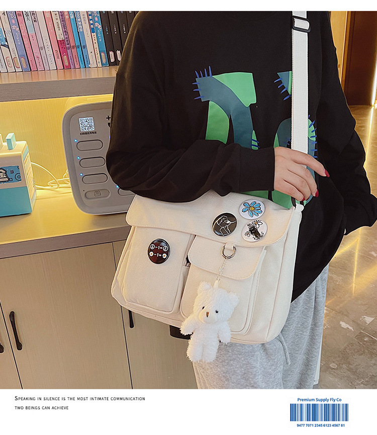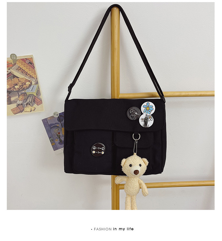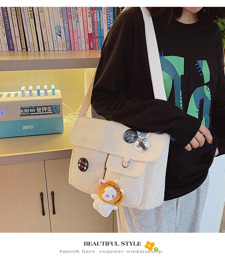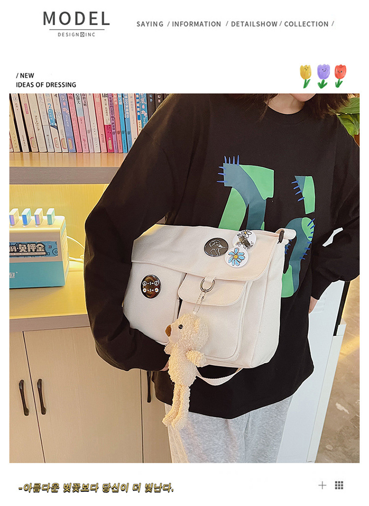 キャンバスバッグ女性ins森系百合ショルダーバッグ大容量本学生の授業中の通勤バッグ