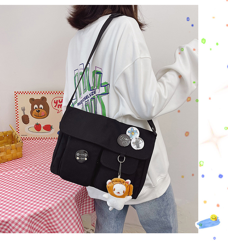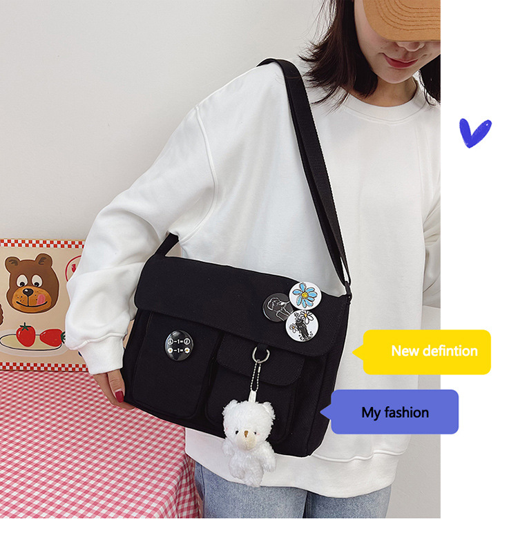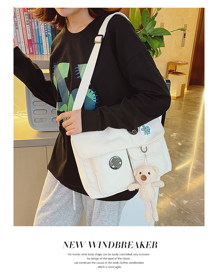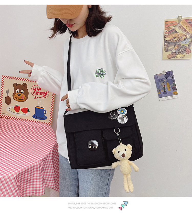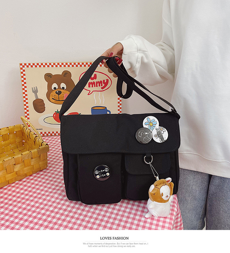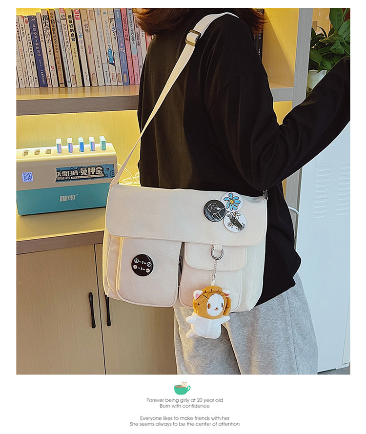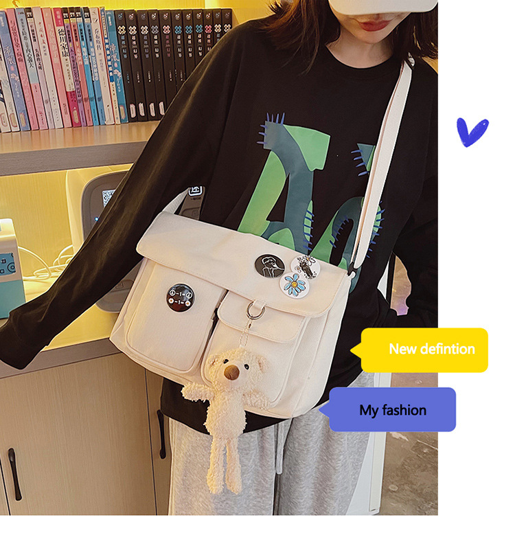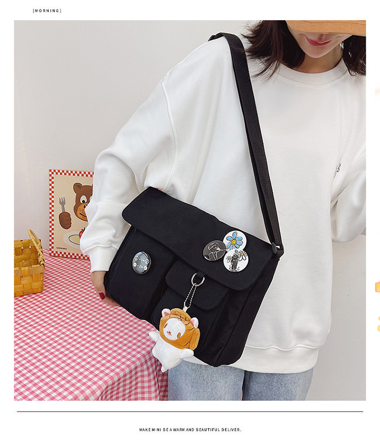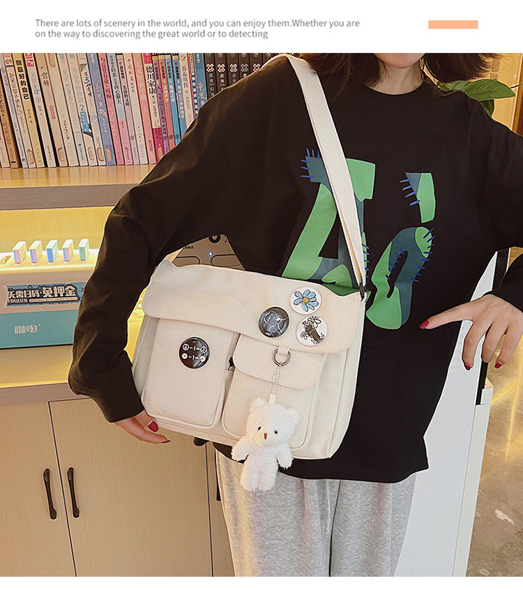 キャンバスバッグ女性ins森系百合ショルダーバッグ大容量本学生の授業中の通勤バッグ