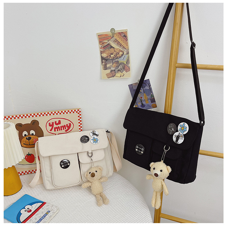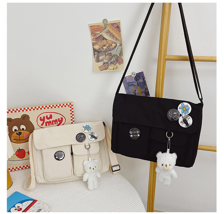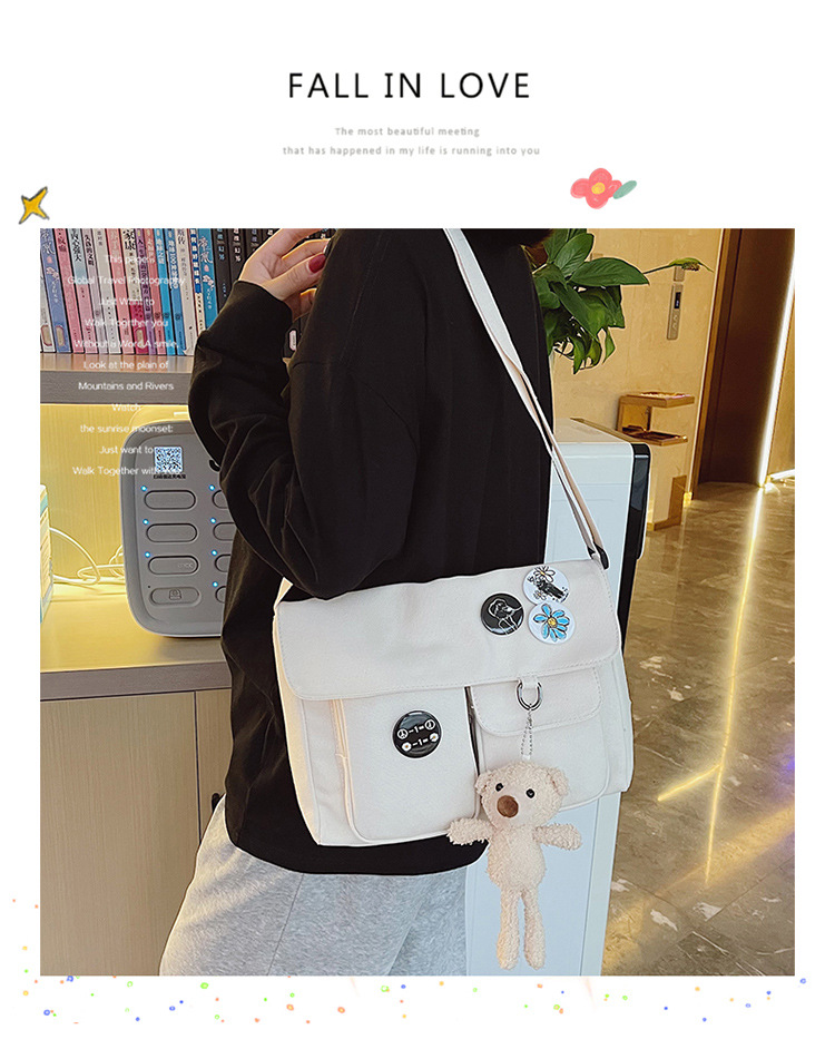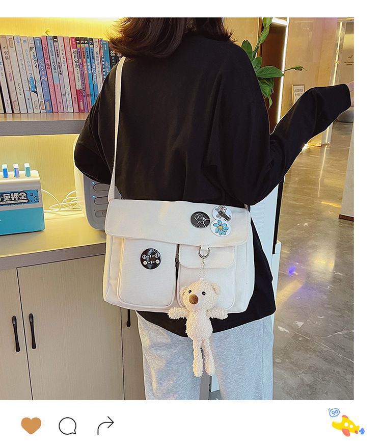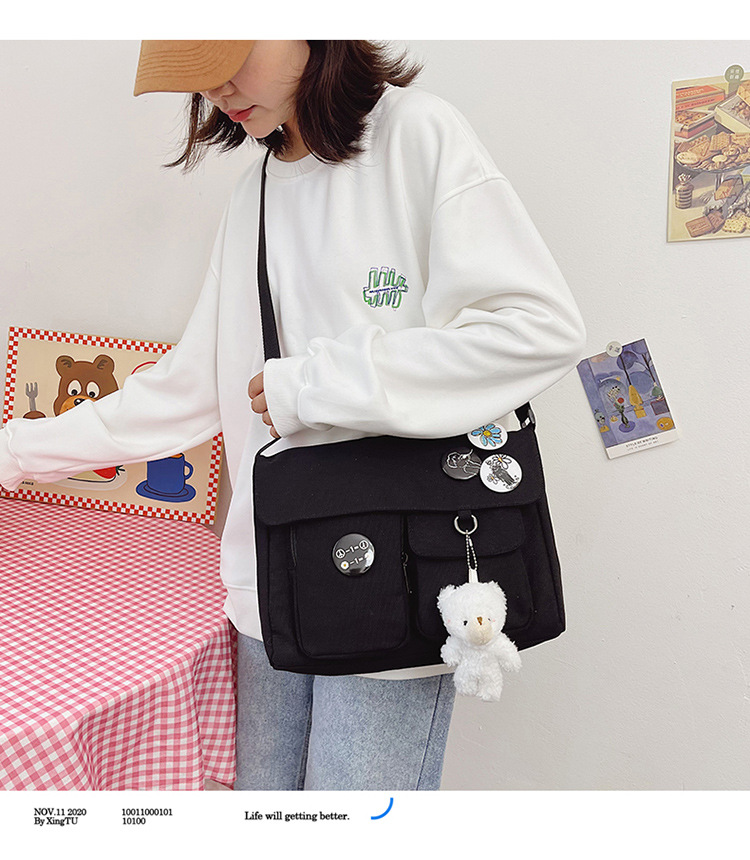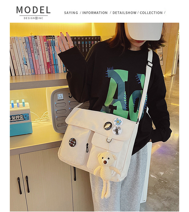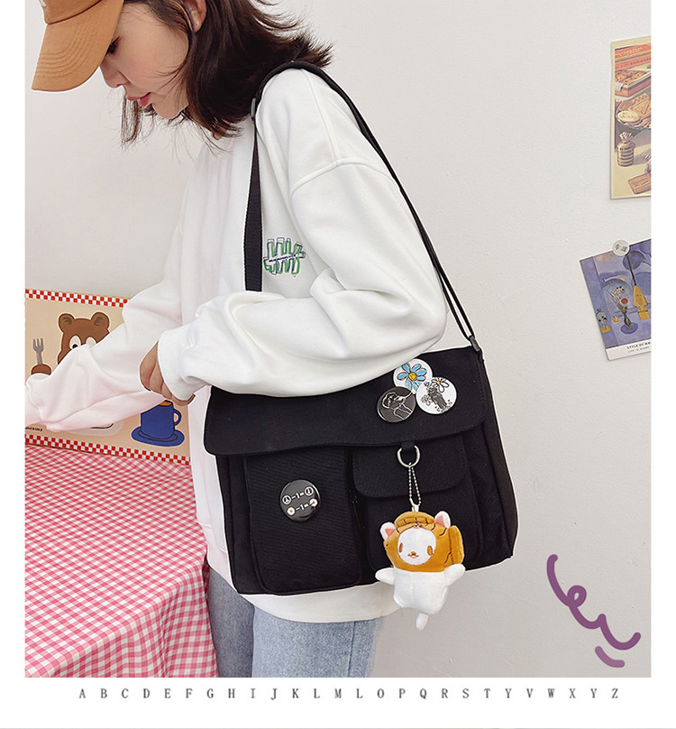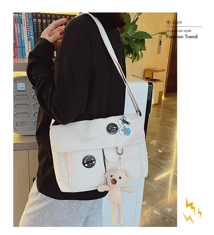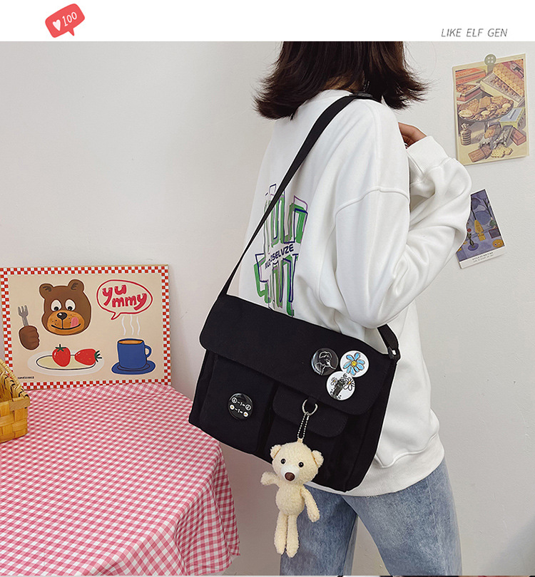 キャンバスバッグ女性ins森系百合ショルダーバッグ大容量本学生の授業中の通勤バッグ