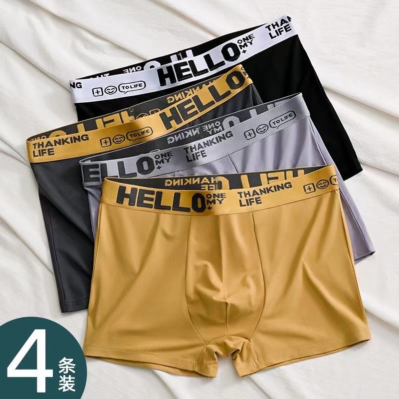 抖音で話題のハロー・ミルクシルクメンズ下着、通気性のあるボクサーパンツ、メンズ四角パンツ、ミッドウエストボクサーパンツ