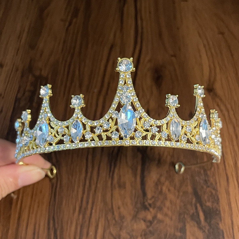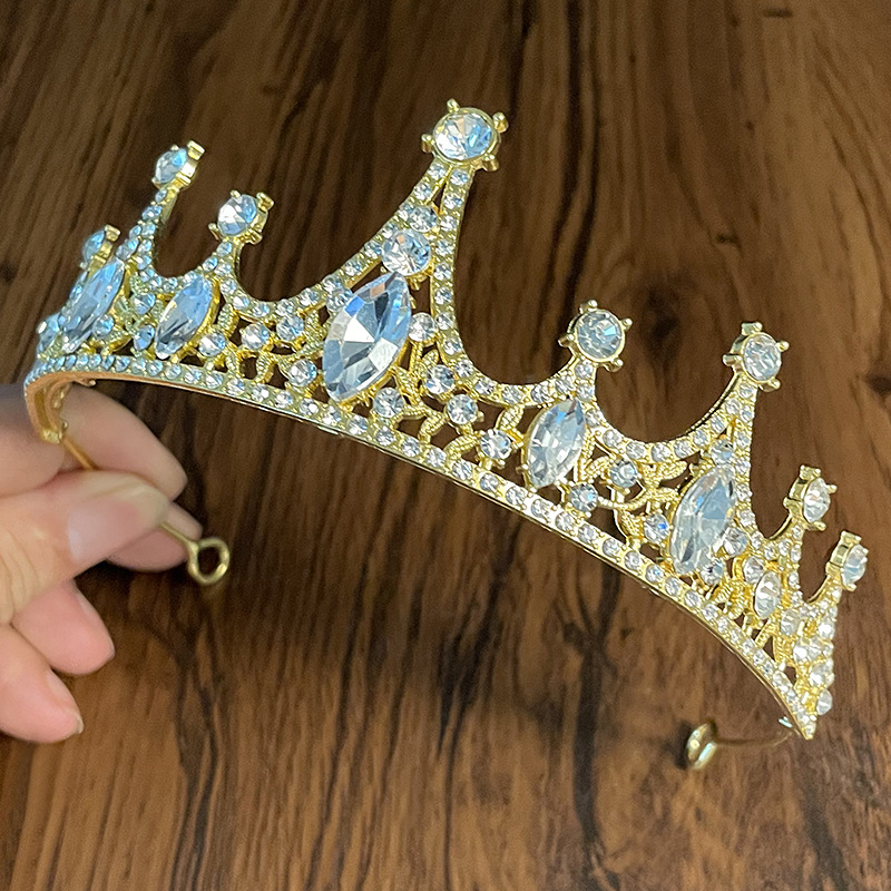 ヨーロッパとアメリカの花嫁用クラウンヘッドドレス、クロスボーダーカラフルラインストーンヘアバンド、バロック合金クラウン、ウェディングドレスアクセサリー