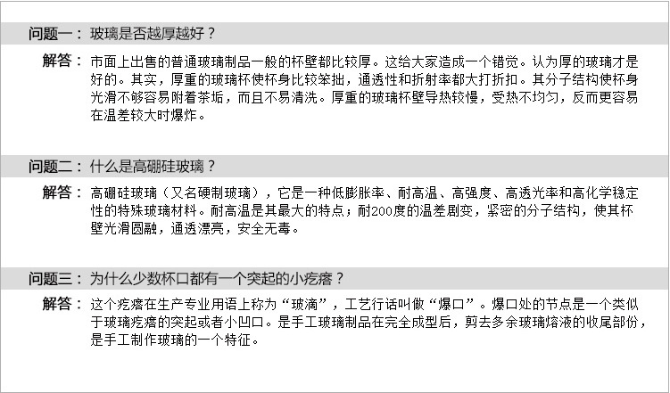 【材质特点】1.采用高硼硅玻璃,质感好;