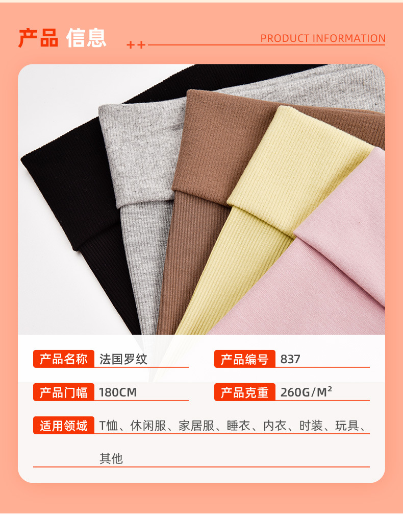 260gフランスの細いリブ生地40本人綿リブ2*2ニットtシャツパジャマ下着生地