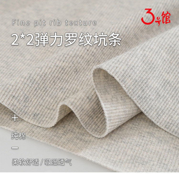 32番手2×2コットンリブ生地、スウェットシャツの袖口、襟、裾のリブ素材、伸縮性のある純綿リブ生地