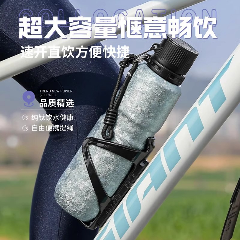 新款纯钛骑行保温杯一键开盖运动水壶户外露营健身便携纯钛杯批发