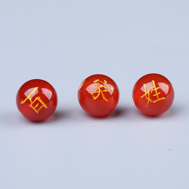 天然赤瑪瑙金箔刻印百家姓干支年散珠丸玉飾り付けビーズ串ビーズ赤瑪瑙散珠