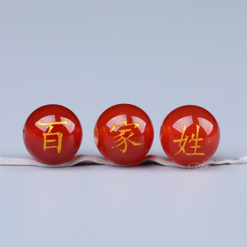 百家姓珠子红玛瑙厂家批发散珠双面字玛瑙刻字diy配件批发