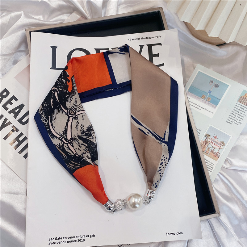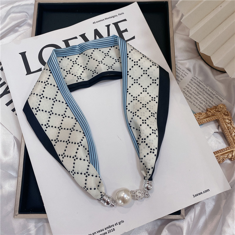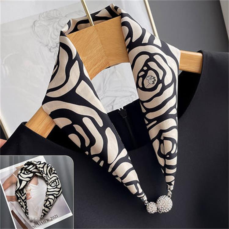 磁気ボタンのシルクタオルの夏のネックレスの怠け者のマフラーのペンダントの薄いタイプのマフラーの髪は首の鎖骨の真珠の小さい襟のタオルの長い条を保護します。