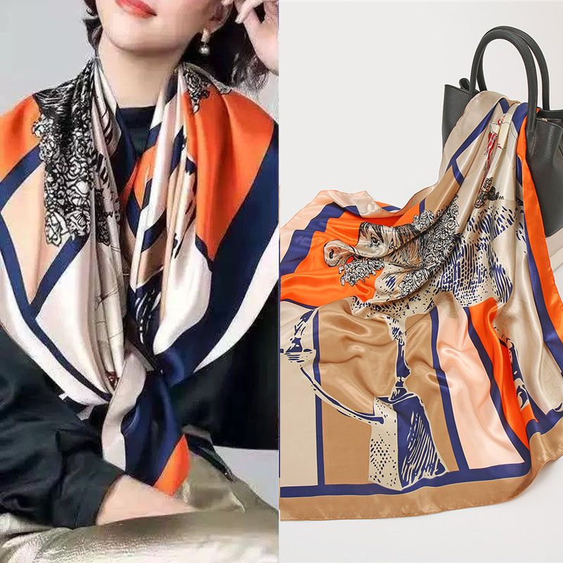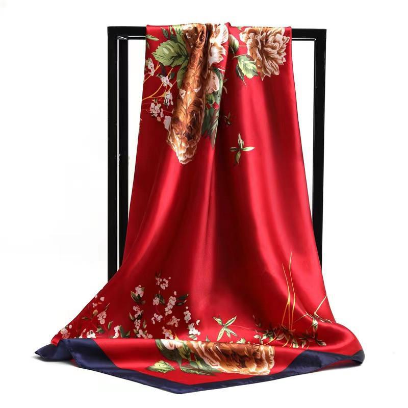 春と秋の冬の新しいサテンのスカーフの女性の百合90cmのシミュレーションのシルクのボタンのプリントの贈り物のマフラー