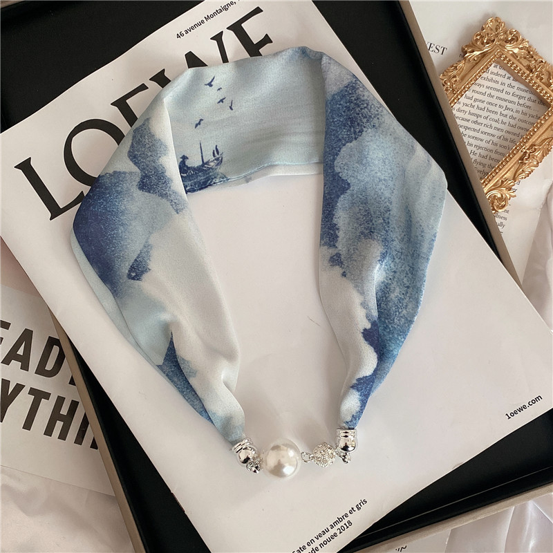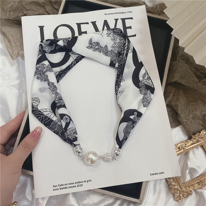 磁気ボタンのシルクタオルの真珠のネックレスのヘアバンドの国風の新型の磁気力は鎖骨の小さい長い条の女性の夏の首のベルトの卸売りを掛けます。