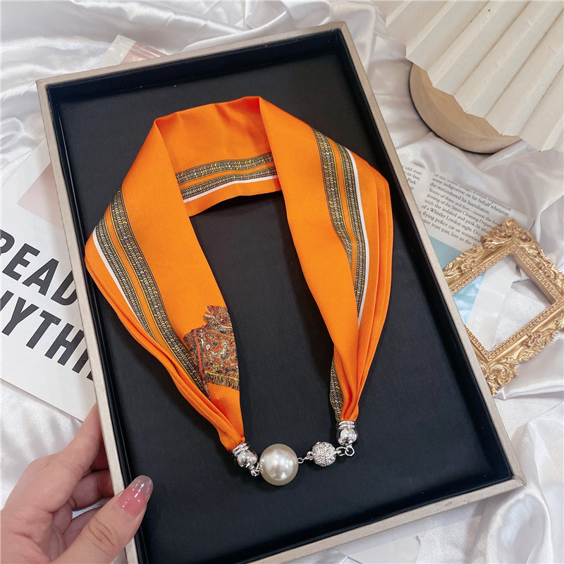 真珠のダイヤモンドの磁気はシルクのスカーフのネックレスの女性の復古の百合のファッションの薄いタイプのスカーフを入れて自分で首を巻いて卸売りします。