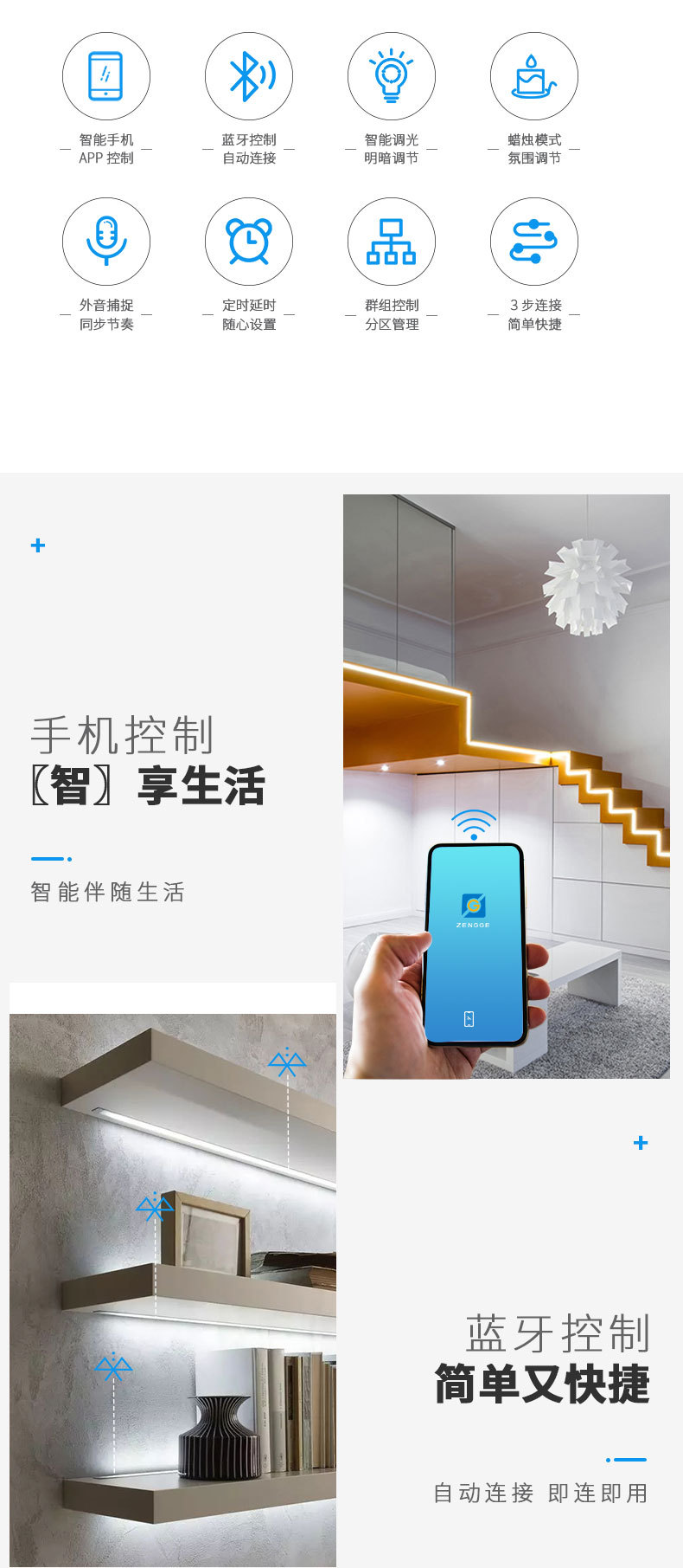 ゼンジーファンタジーカラーコントローラーPCBAベアボード雰囲気照明ソリューションカスタムスマートコントローラーLEDコントローラーAPP
