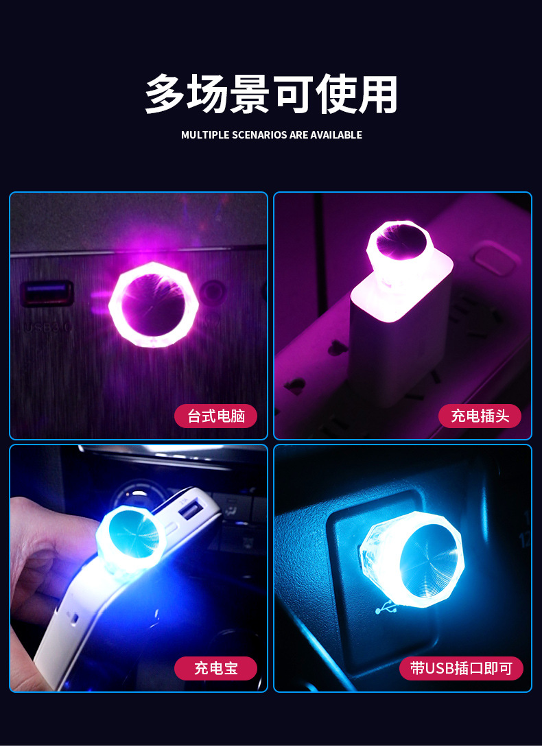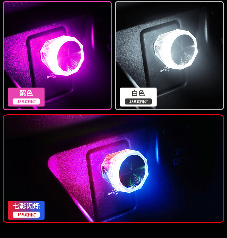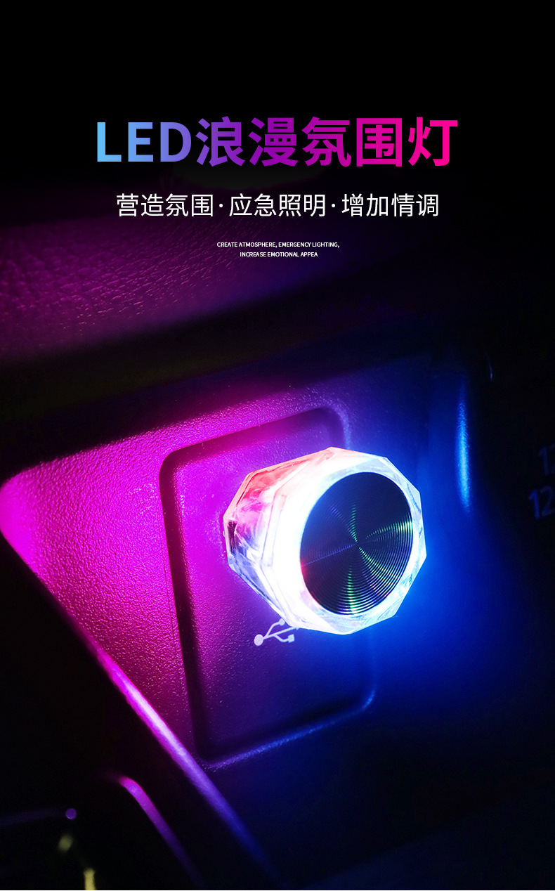 シガレットusb雰囲気ランプled七彩小夜灯無改造自動車雰囲気ランプ車載室内家庭用装飾