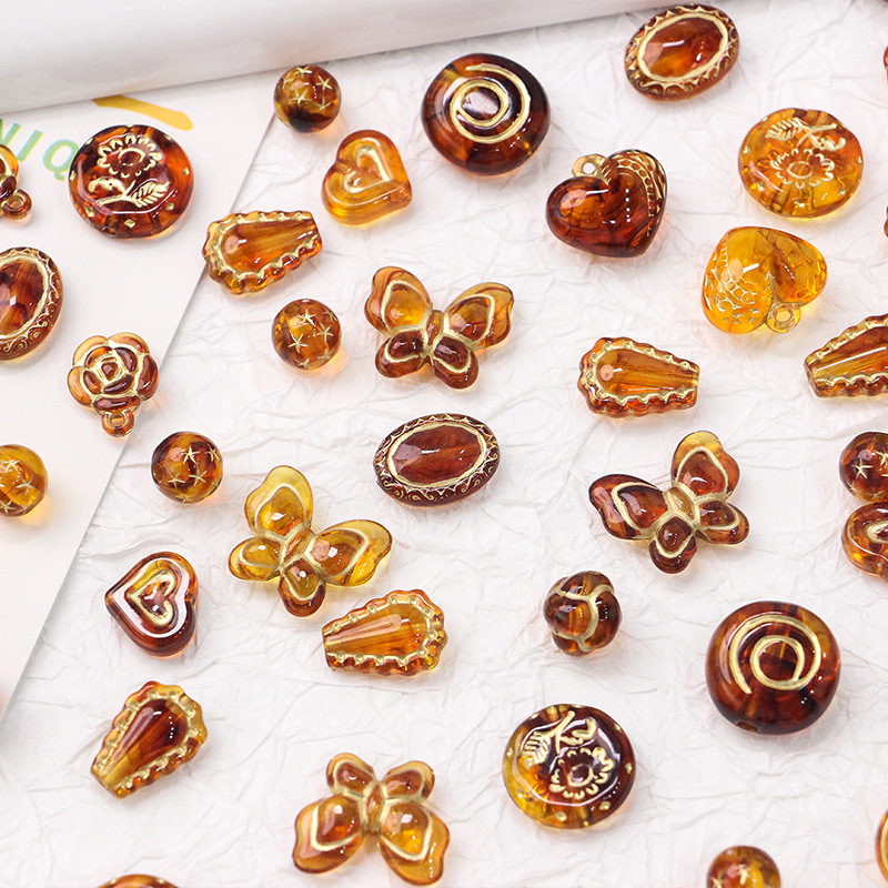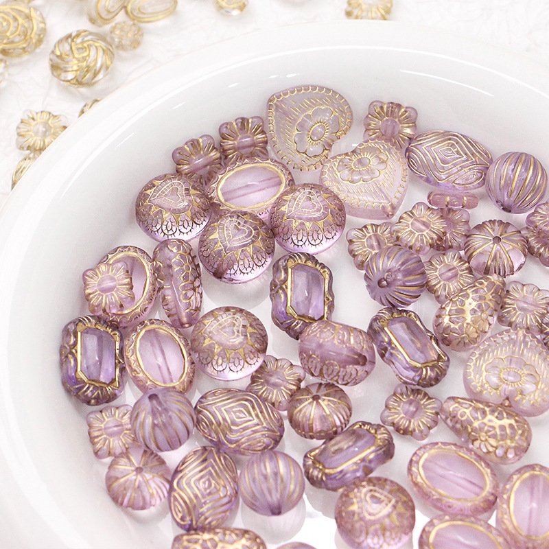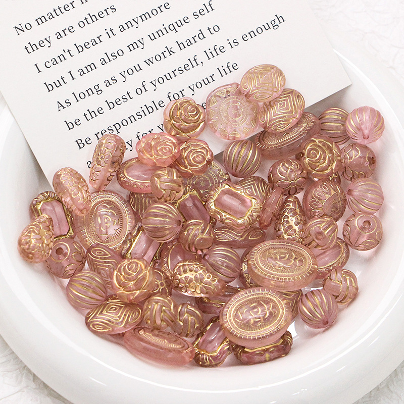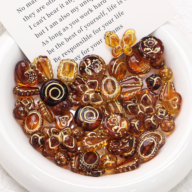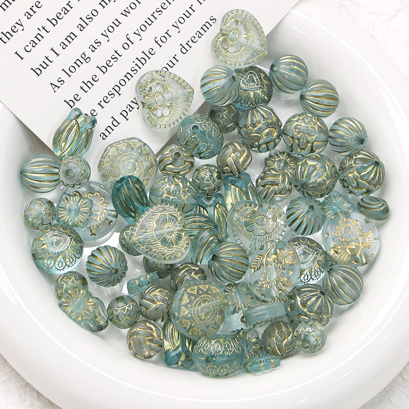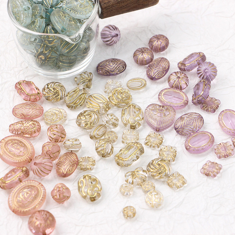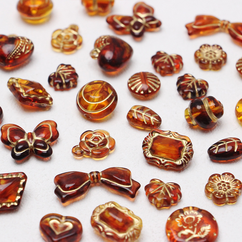 新型レトロ日系ins描金チェコビーズ盲箱アクリルdiy新米手作りビーズ散珠材料