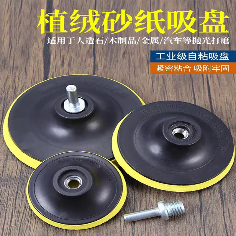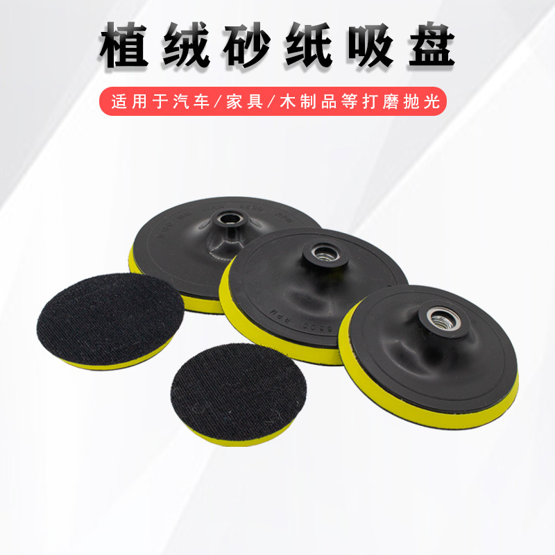 自粘盘和打磨机配套使用,正面有螺纹可以拧上打磨机,反面可粘上植绒砂纸片、水磨片或自粘羊毛球,广泛用于人造石、家具及木制品、金属、汽车等物品的打磨和抛光!
