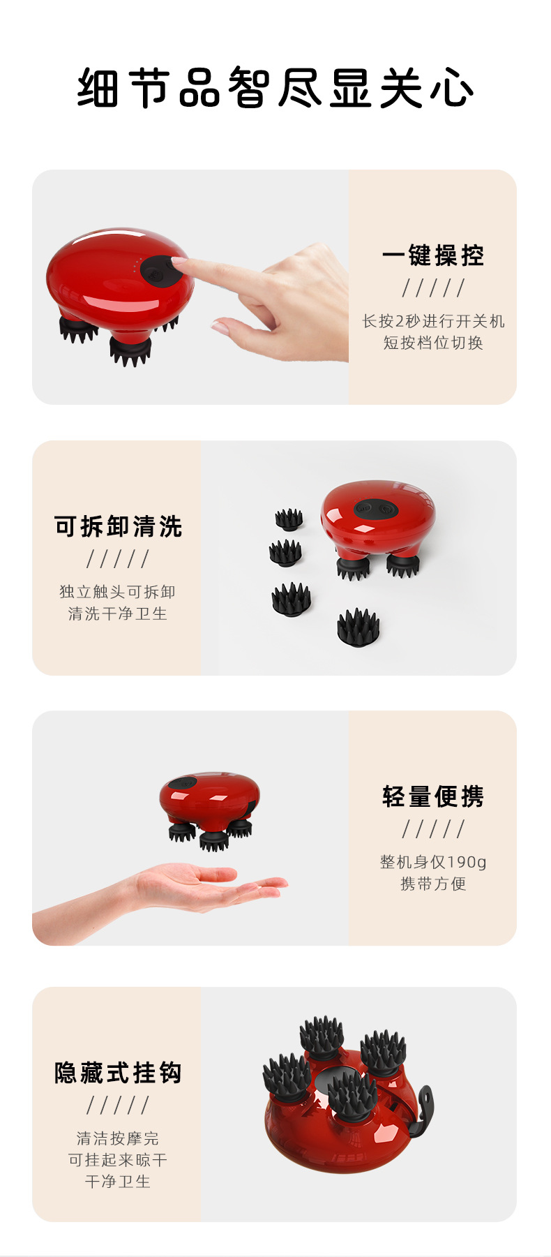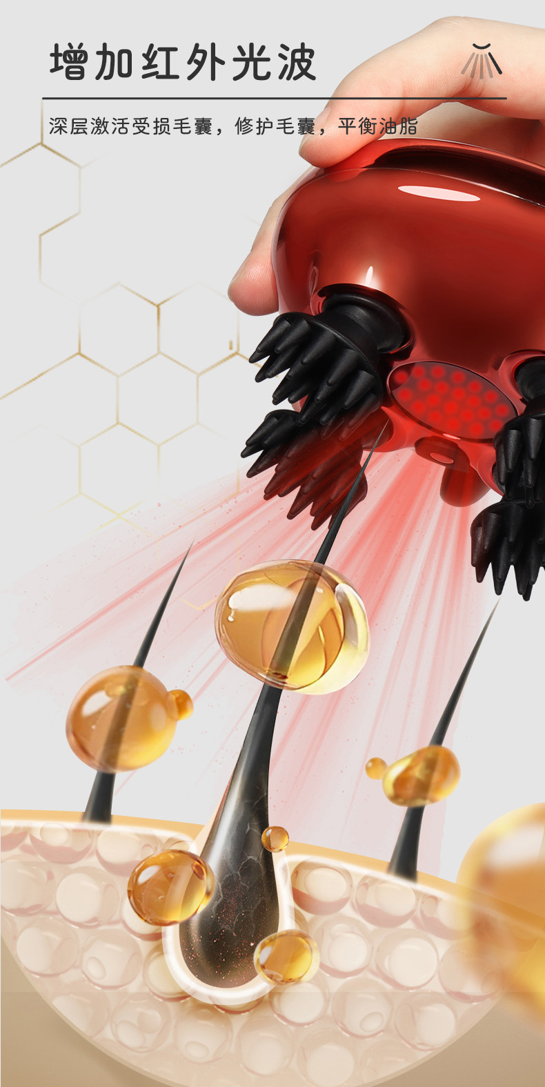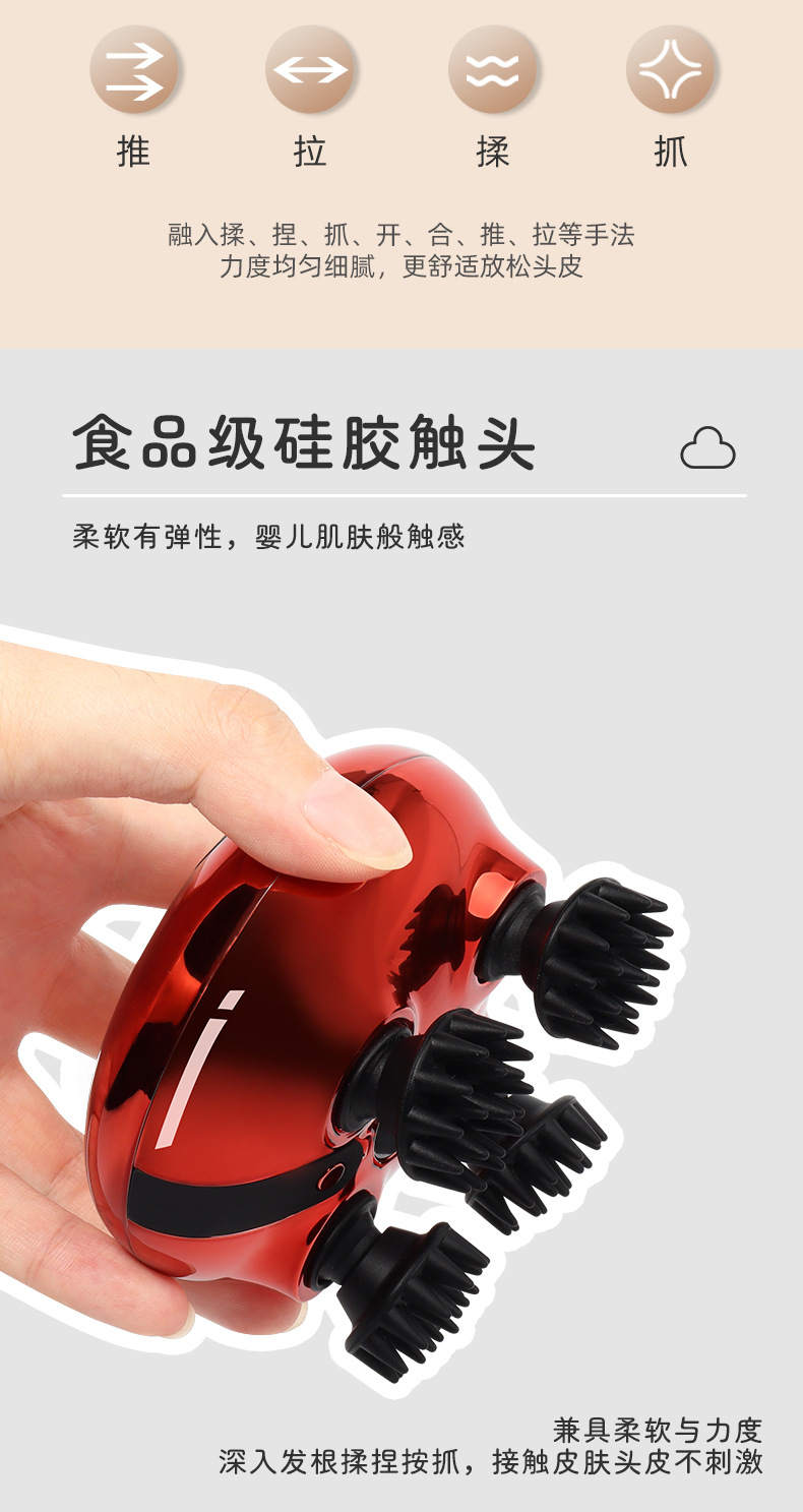 クロスボーダー爆品ヘッドマッサージ器充電防水頭皮マッサージ器赤色照射ヘッドマッサージ器マッサージ爪