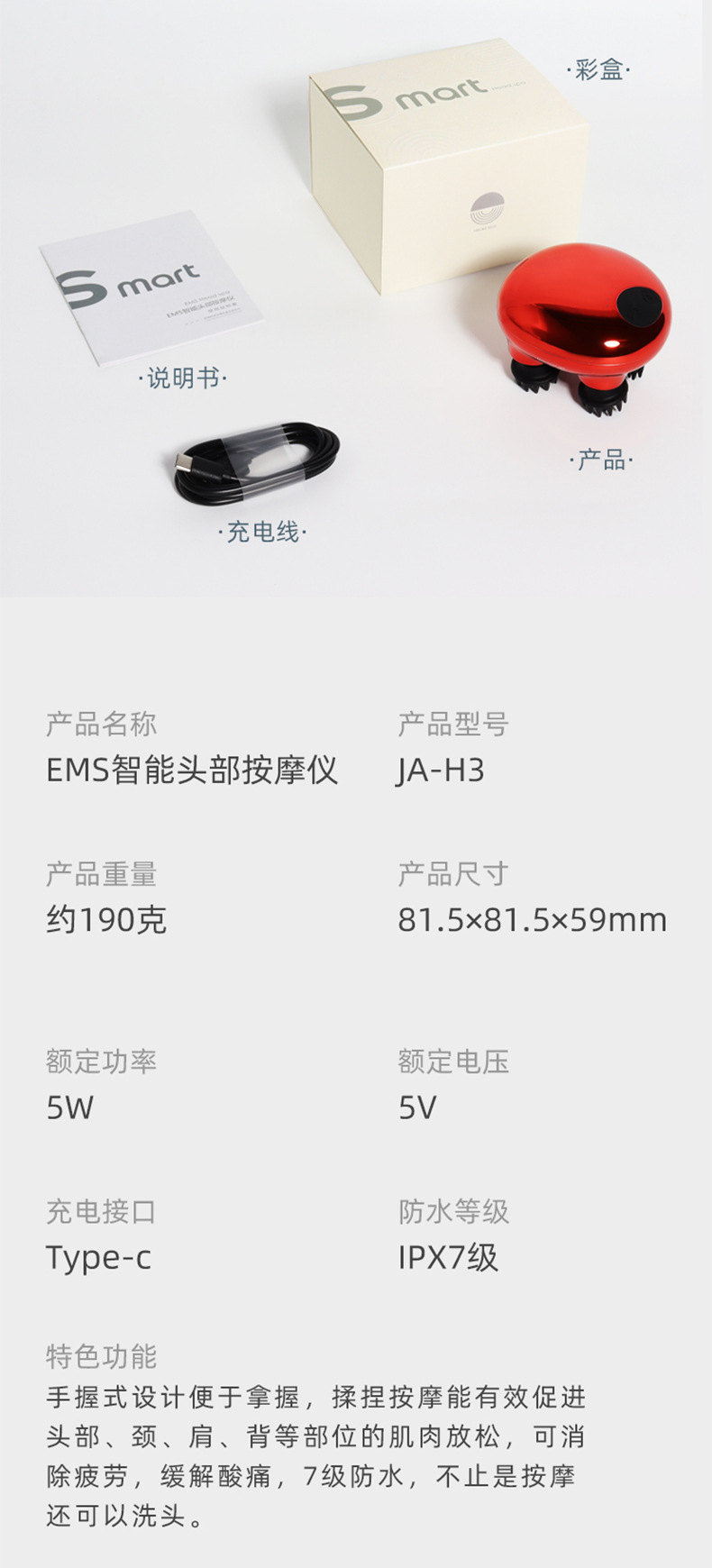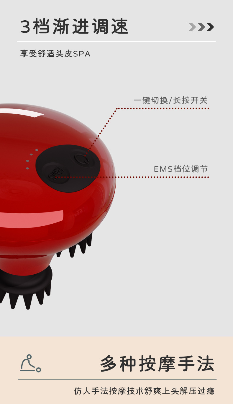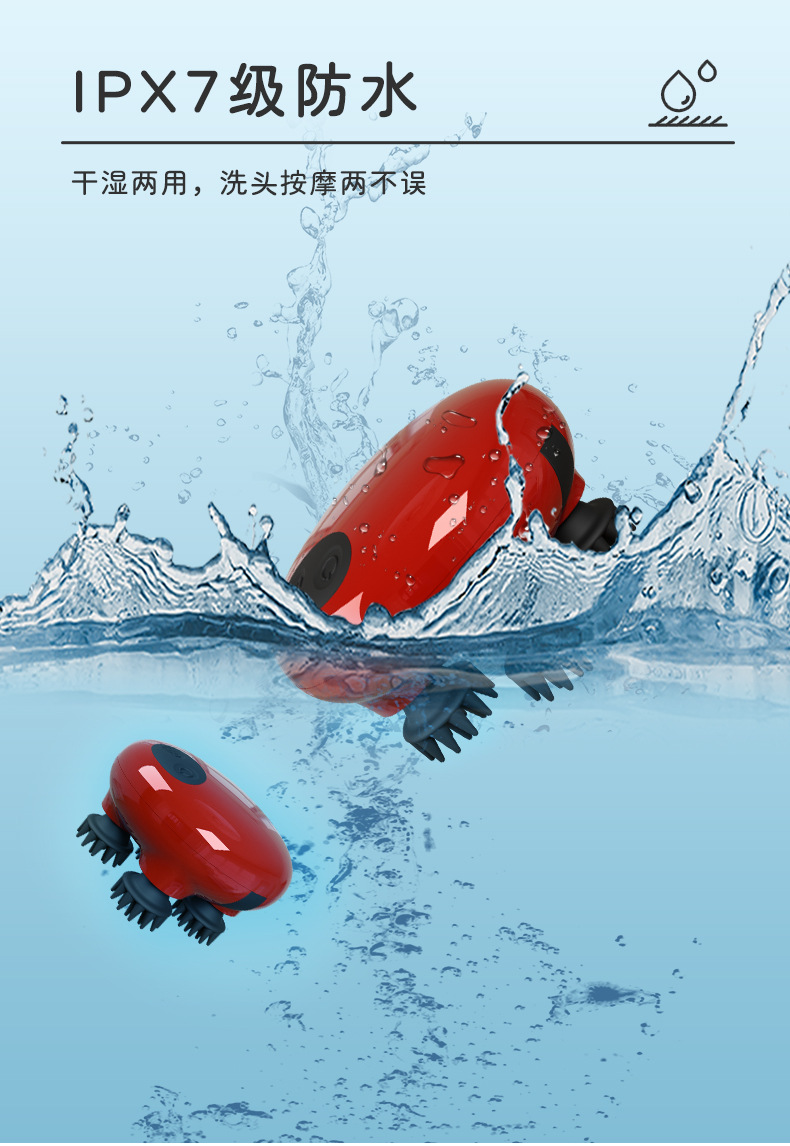 EMS微电动流头皮部按摩器头疗解压穴位防水跨境揉捏手持式按摩仪
