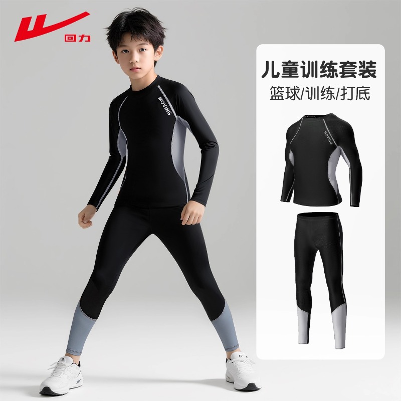 回力儿童打底紧身衣训练服男童篮球服速干衣体能秋冬足球运动套装