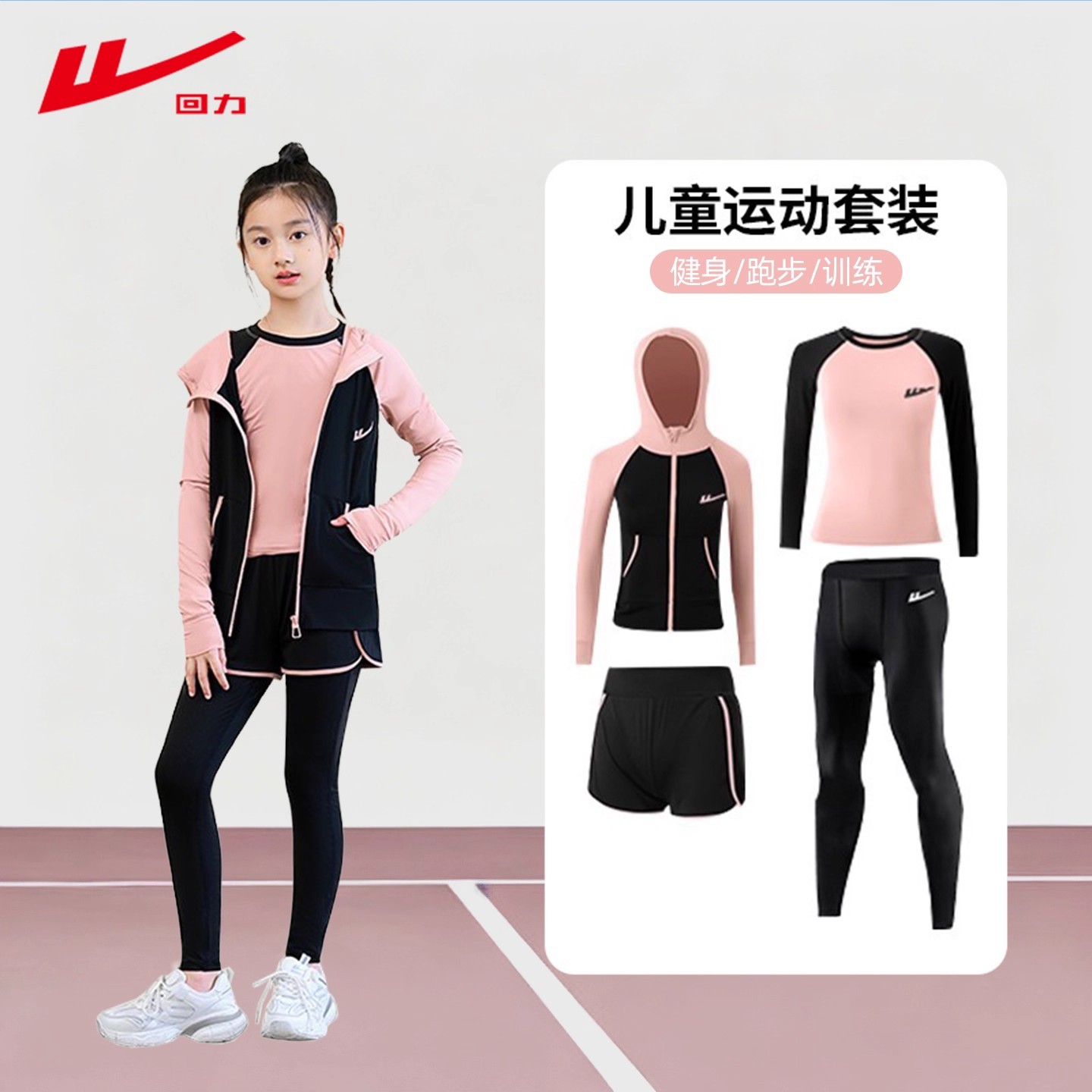 回力儿童紧身女童速干衣篮球服训练瑜伽足球健身打底跑步运动套装