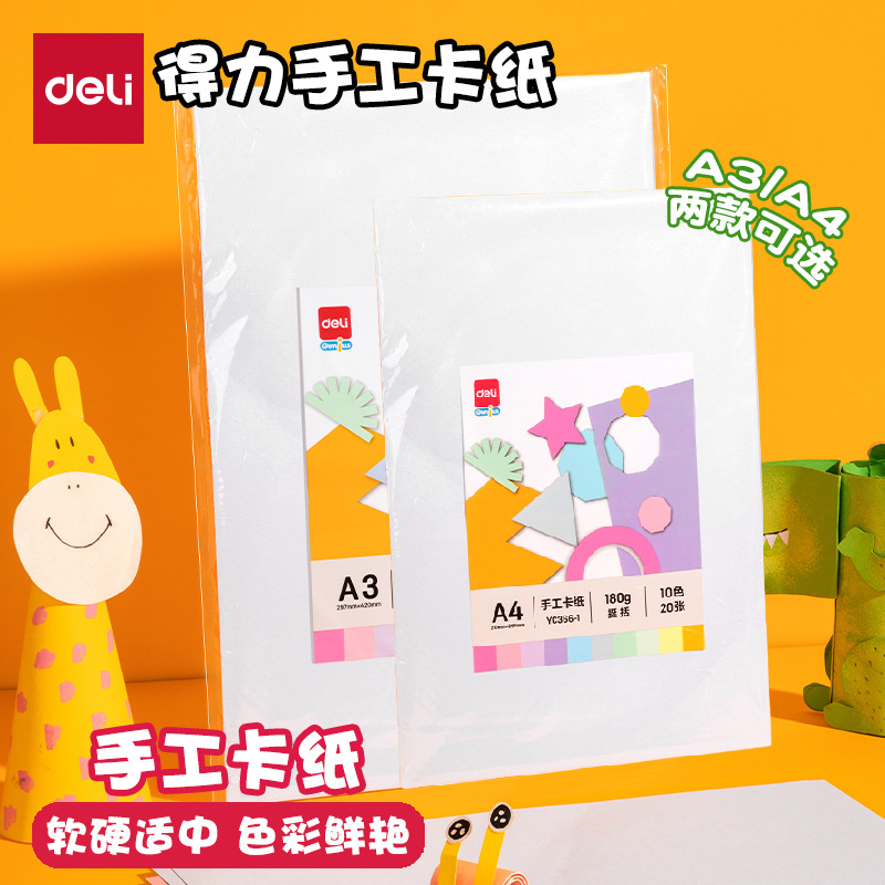 得力彩色卡纸A4/A3手工卡纸儿童手工折纸幼儿园剪纸美术硬卡纸