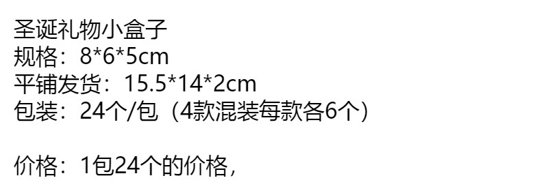 24個のクリスマスのテーマパーティーの喜糖箱のアイデアはシンプルで、箱の新しい包装箱のお菓子箱を持っています。