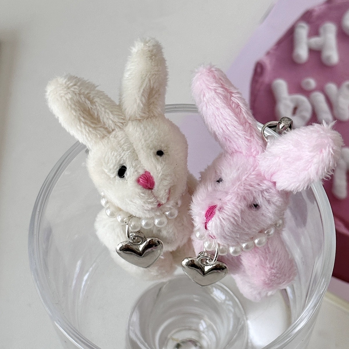 ぼうっとしている少女のかわいいウサギのペンダントのぬいぐるみの真珠の愛のペンダントのぬいぐるみの掛け飾りのキーホルダー