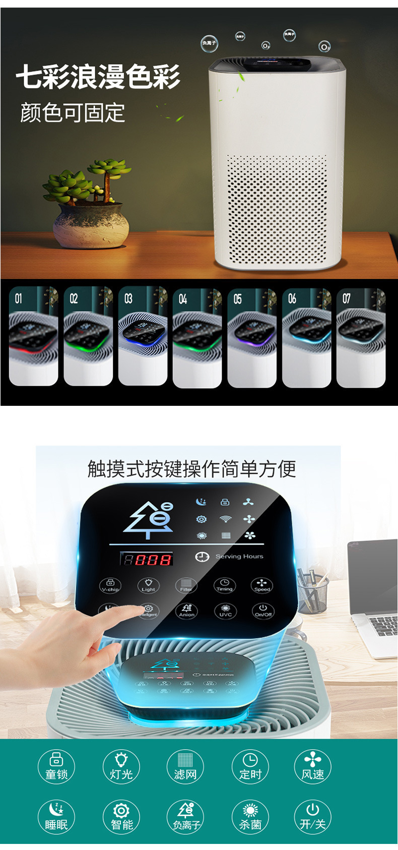 跨境空气净化器桌面卧室厨房客厅家用宾馆除甲醛负离子空气消毒机