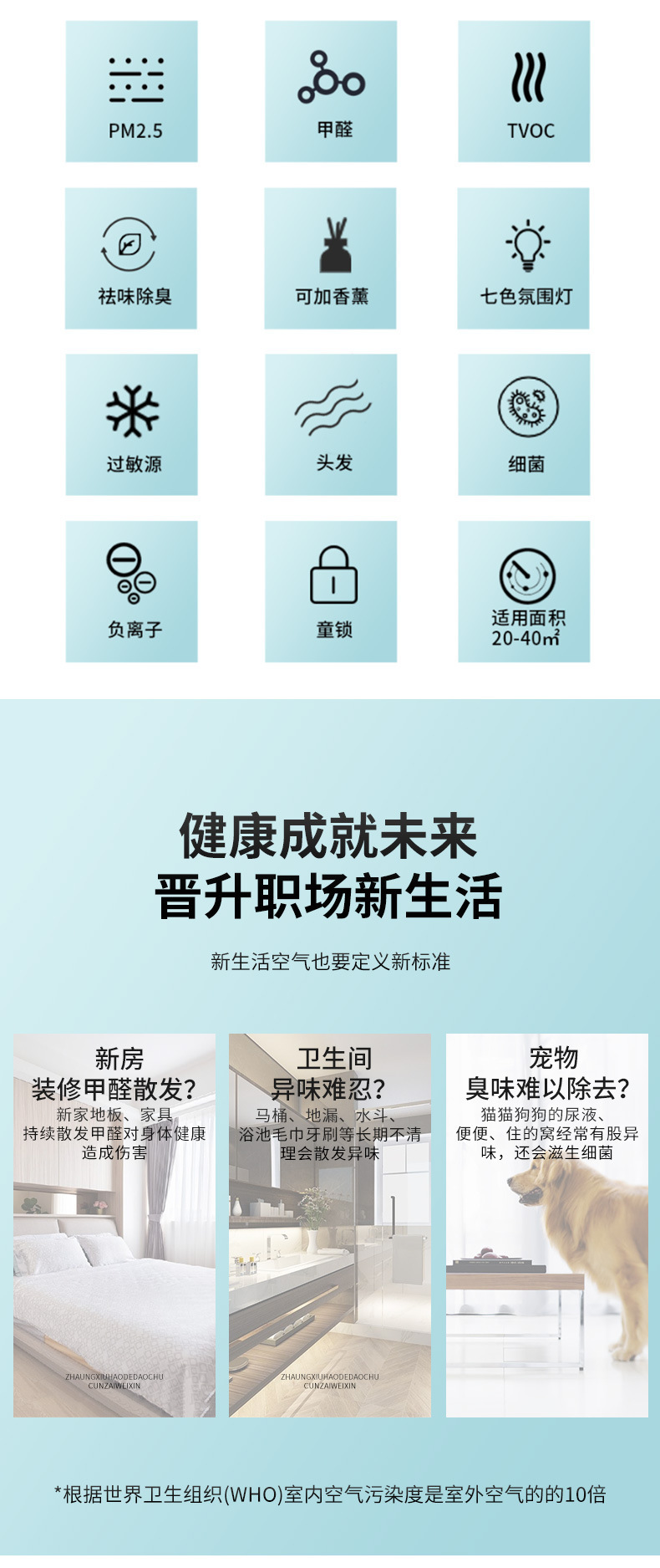 负离子空气净化器家用除甲醛猫毛过滤灰尘吸烟味烟雾净化机除菌