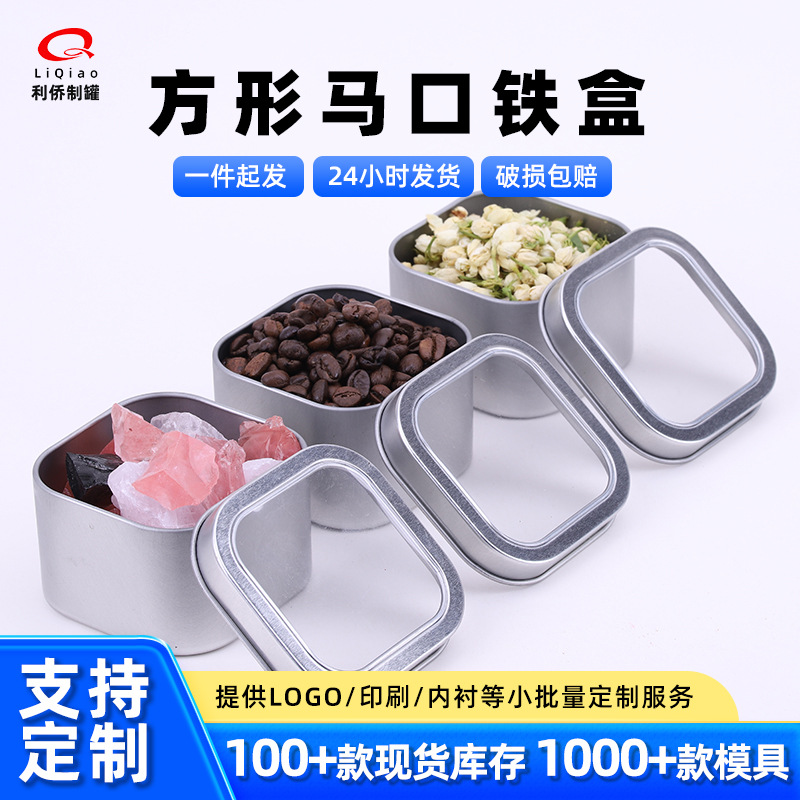 正方形の窓付きブリキ缶、キャンディー用ブリキ缶、コーヒー豆包装用ブリキ缶、お茶用ブリキ缶