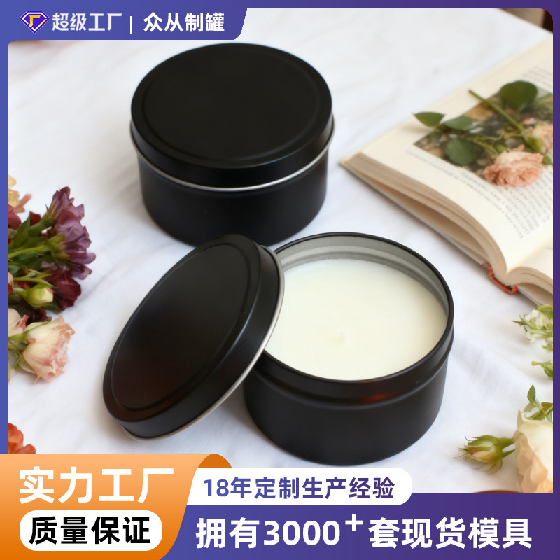 圆形马口铁80z香薰蜡烛铁罐 DIY香薰手工蜡烛亚光黑密封圆罐定制
